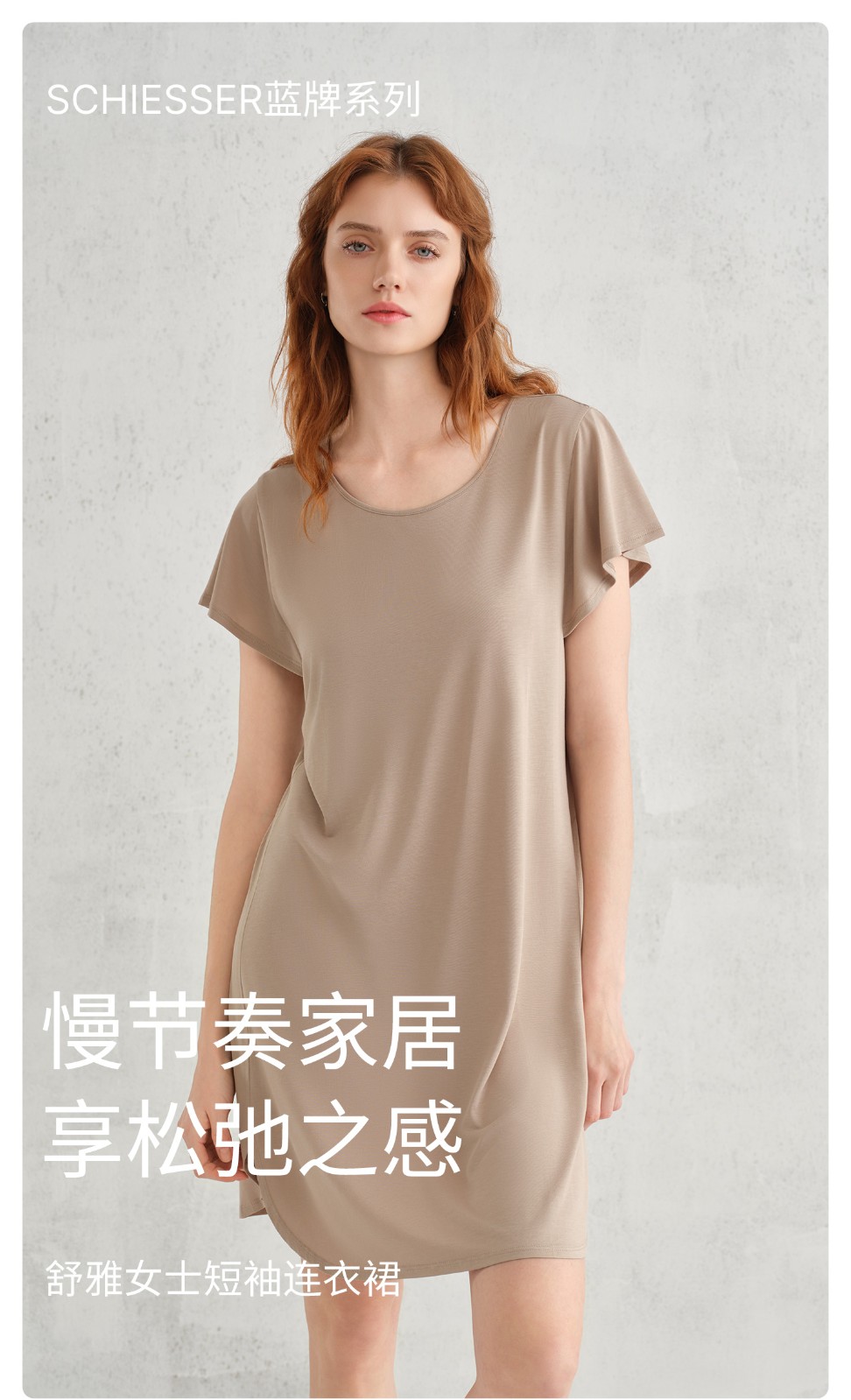 SCHIESSER舒雅26早春新品女士再生纤维大码圆领连衣裙家居服睡裙