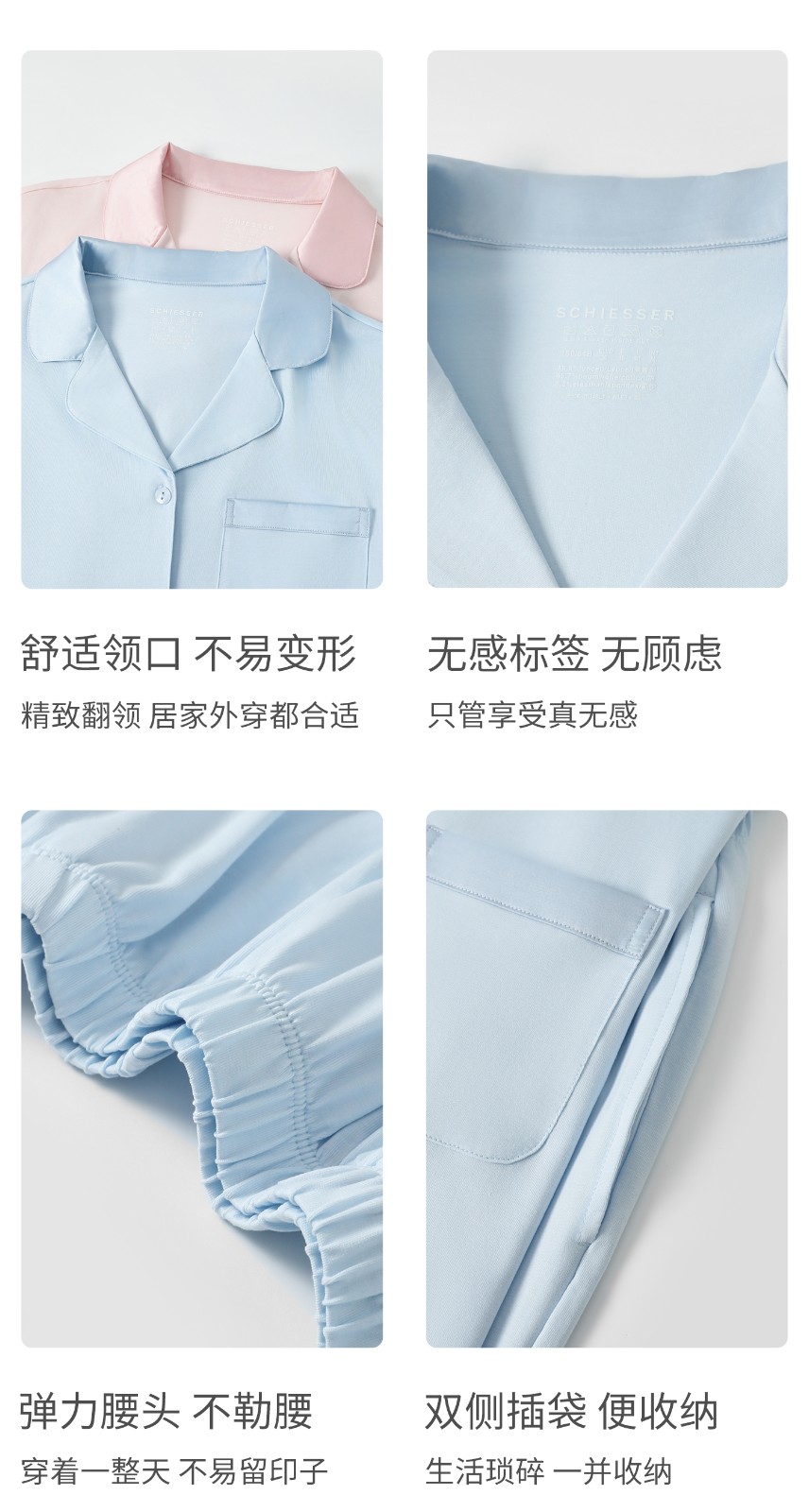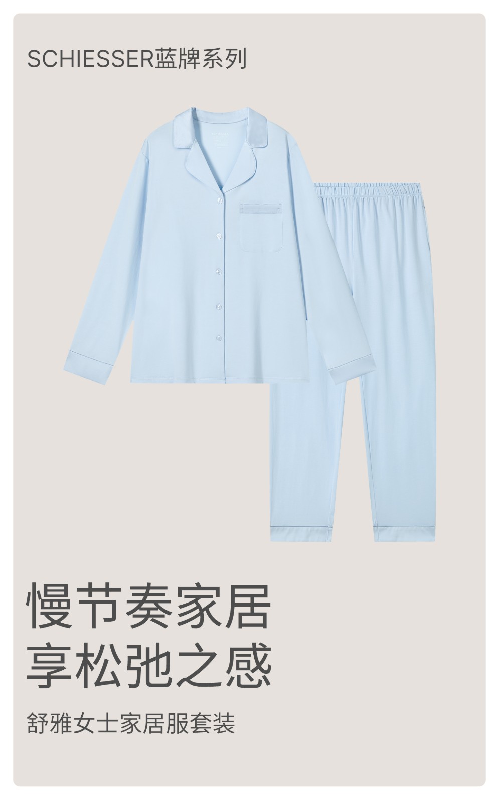 SCHIESSER舒雅26年早春新品女士莱赛尔棉软糯亲肤V领家居服套装