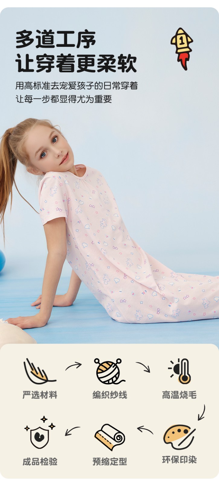 SCHIESSER Girl's Pure Cotton Soft Skin-Friendly Sleepwear Night Dress