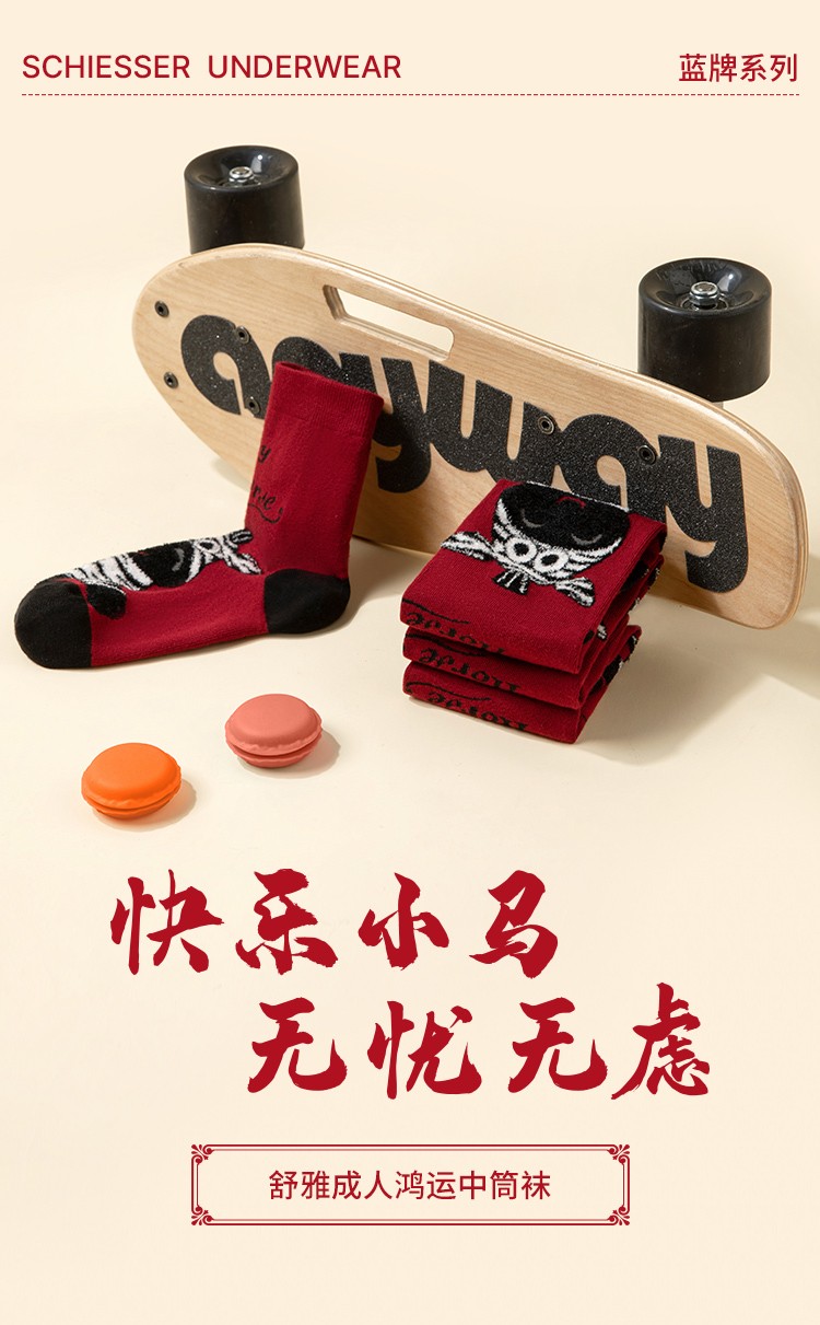 SCHIESSER 2025 F-W Men's & Ladies' 3A-Graded Anti-Bacterial Chinese Zodiac Horse Lucky Socks