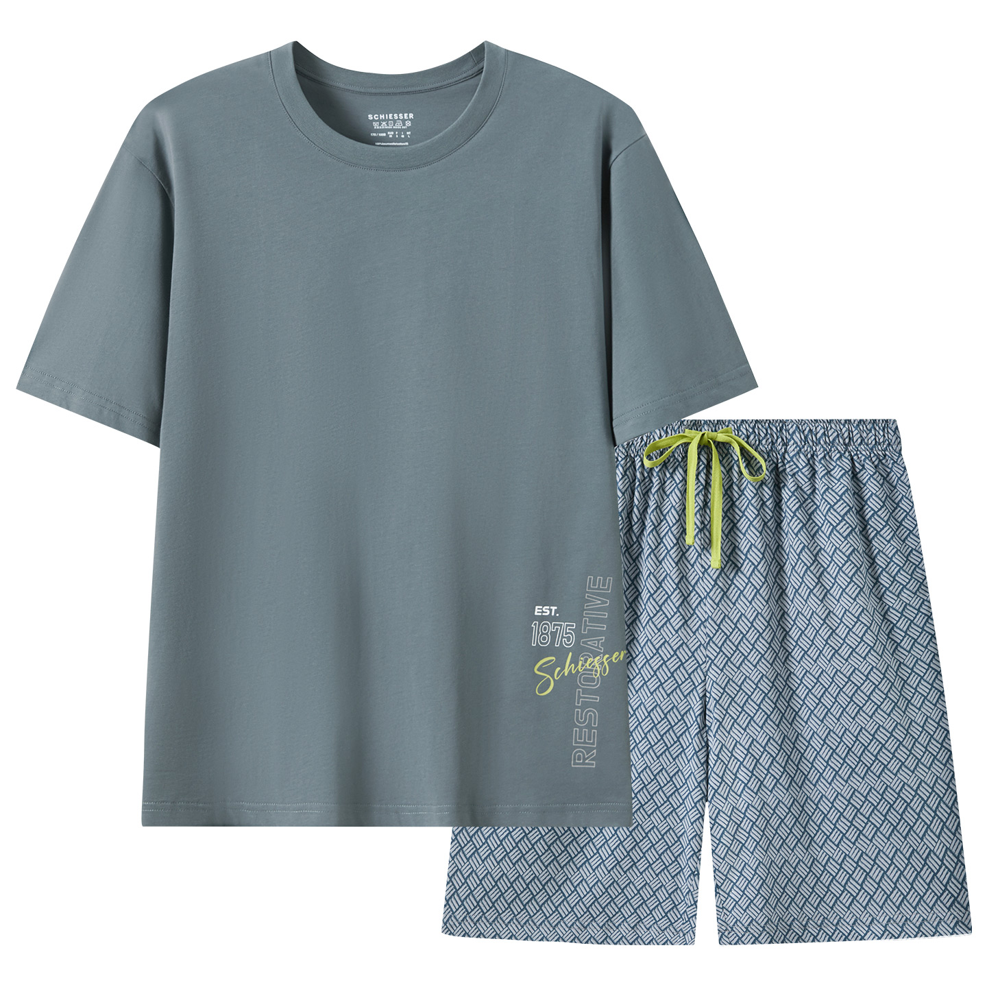 SCHIESSER舒雅26年早春新品男士圆领纯棉印花宽松大码家居服套装