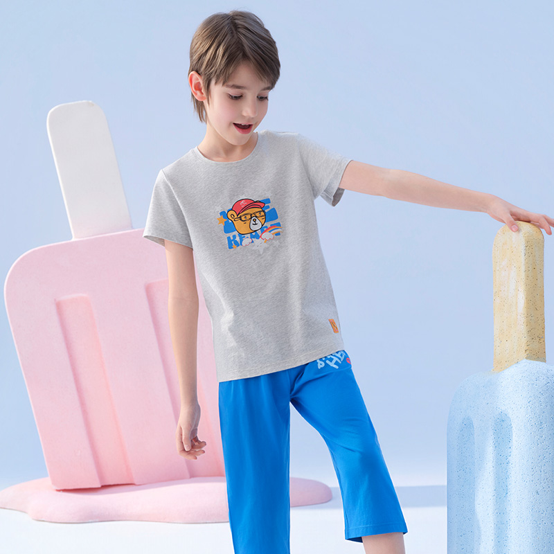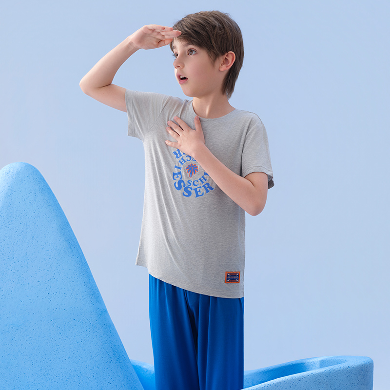 SCHIESSER舒雅25年早秋新品大小童男童莫代尔圆领睡衣家居服套装