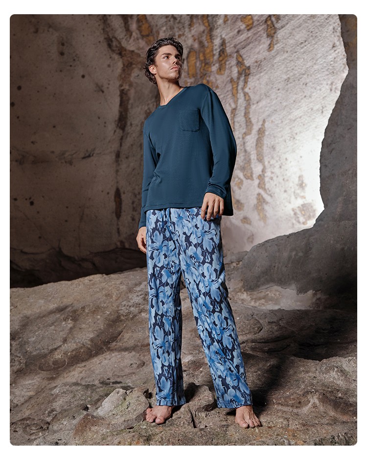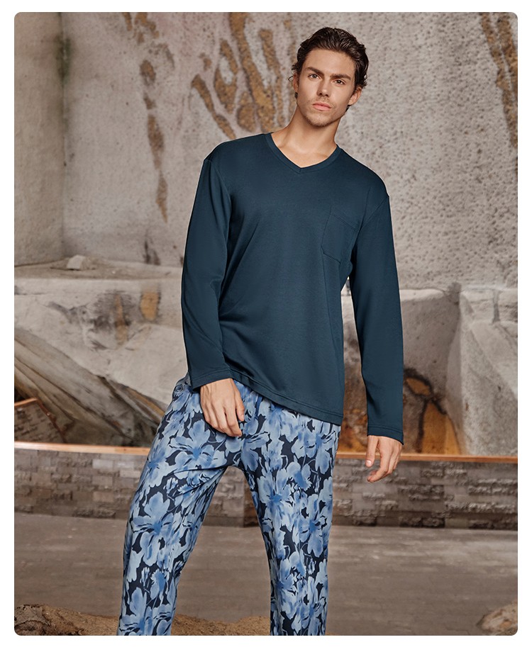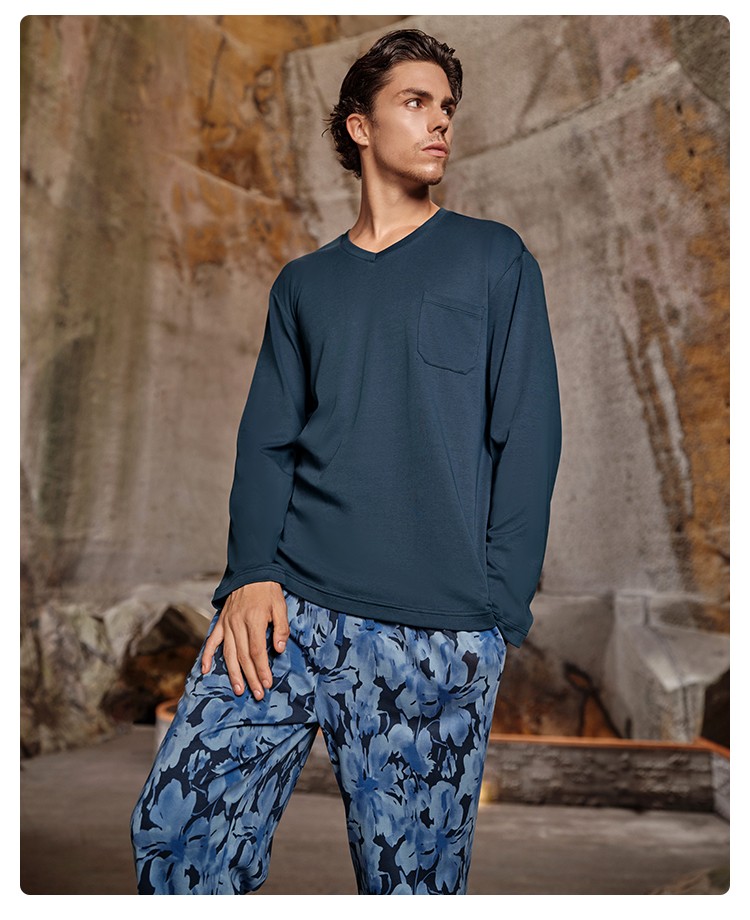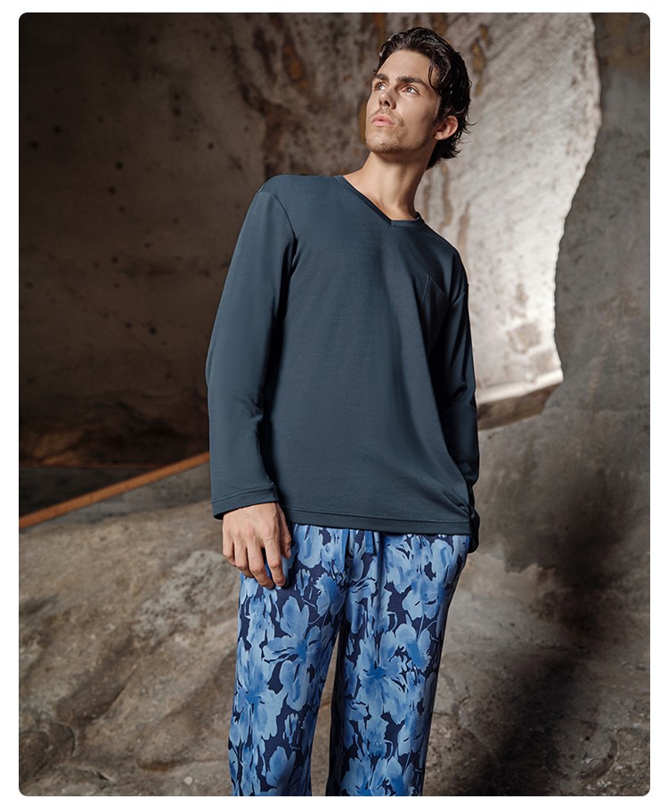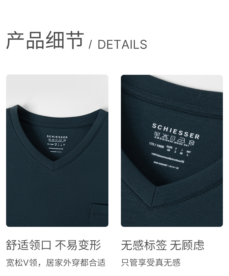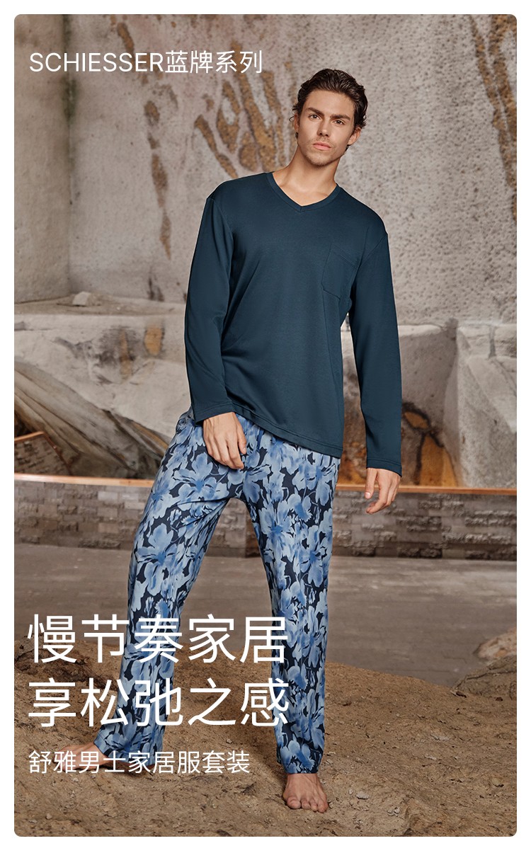 SCHIESSER舒雅25早秋新品男士纯棉印花V领大码睡衣家居服套装