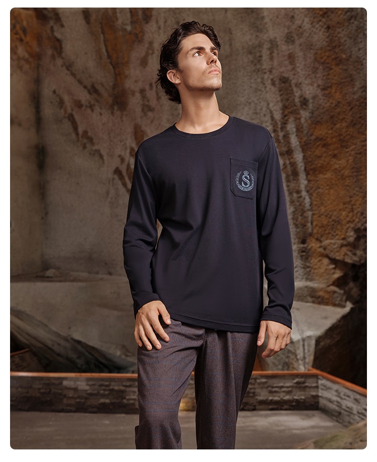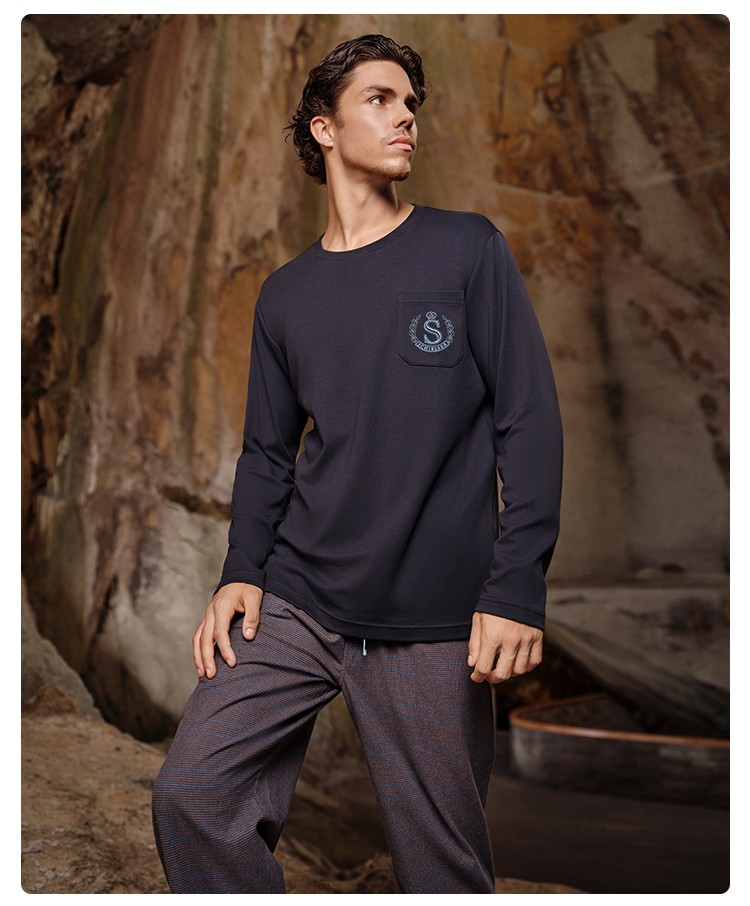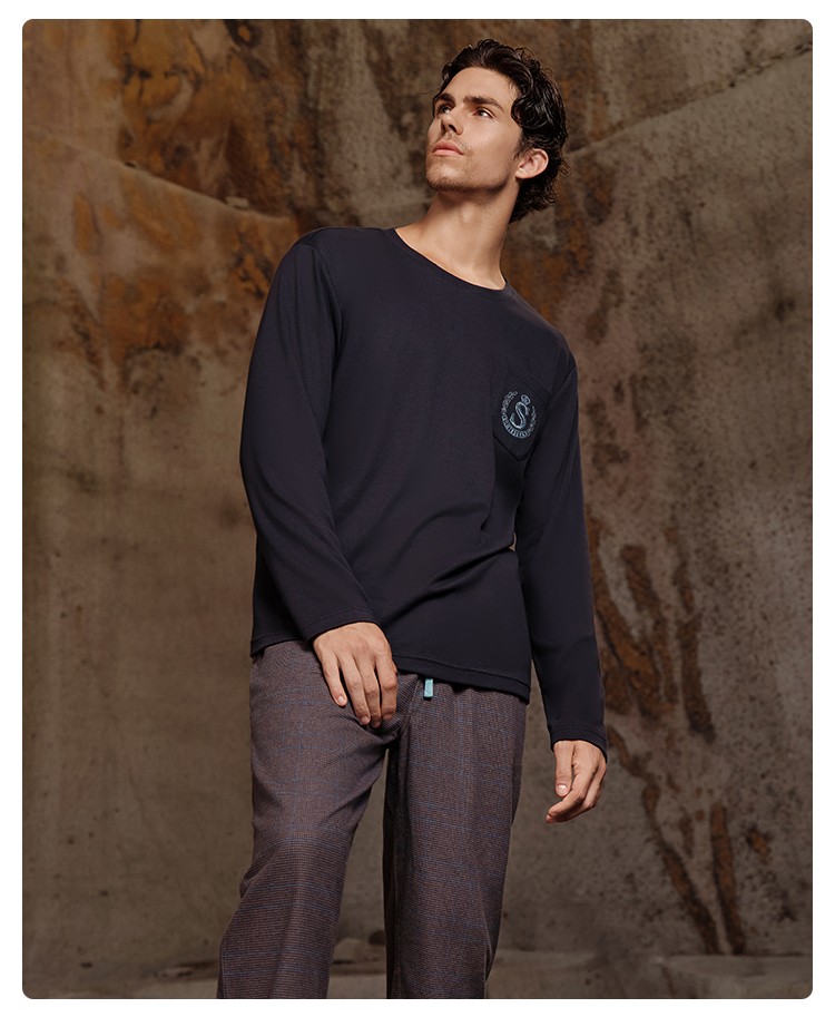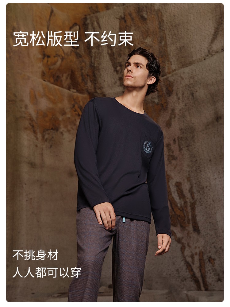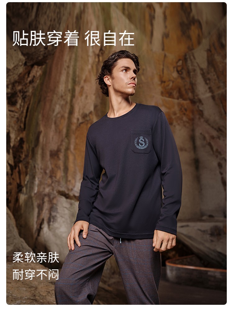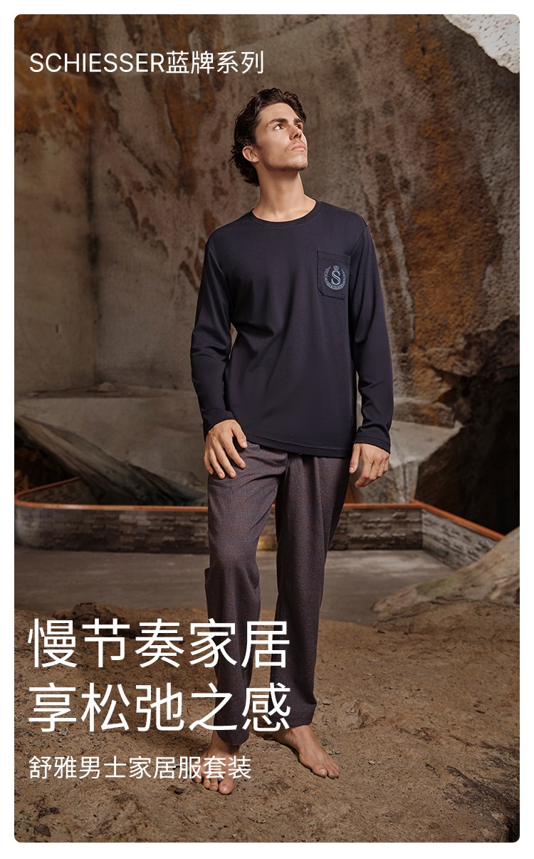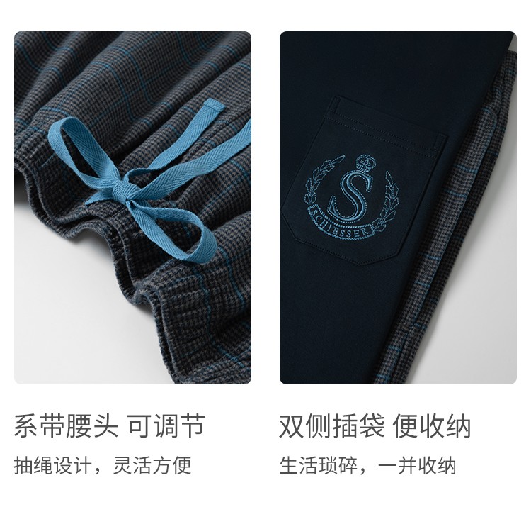 SCHIESSER舒雅25早秋新品男士纯棉格子校园英伦风加大码家居套装