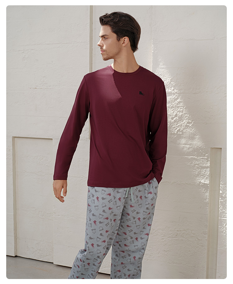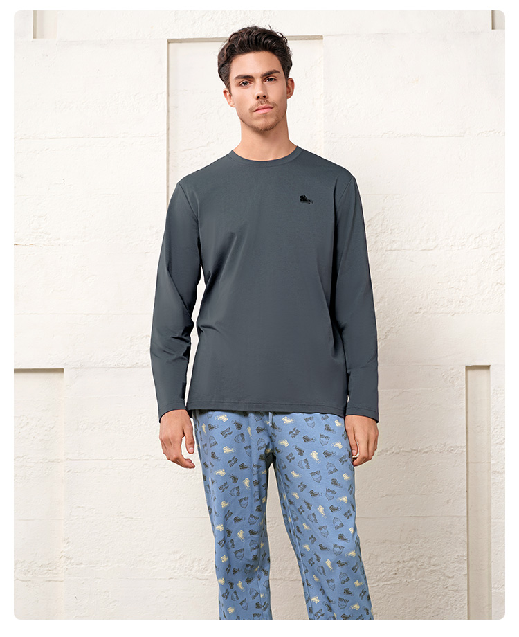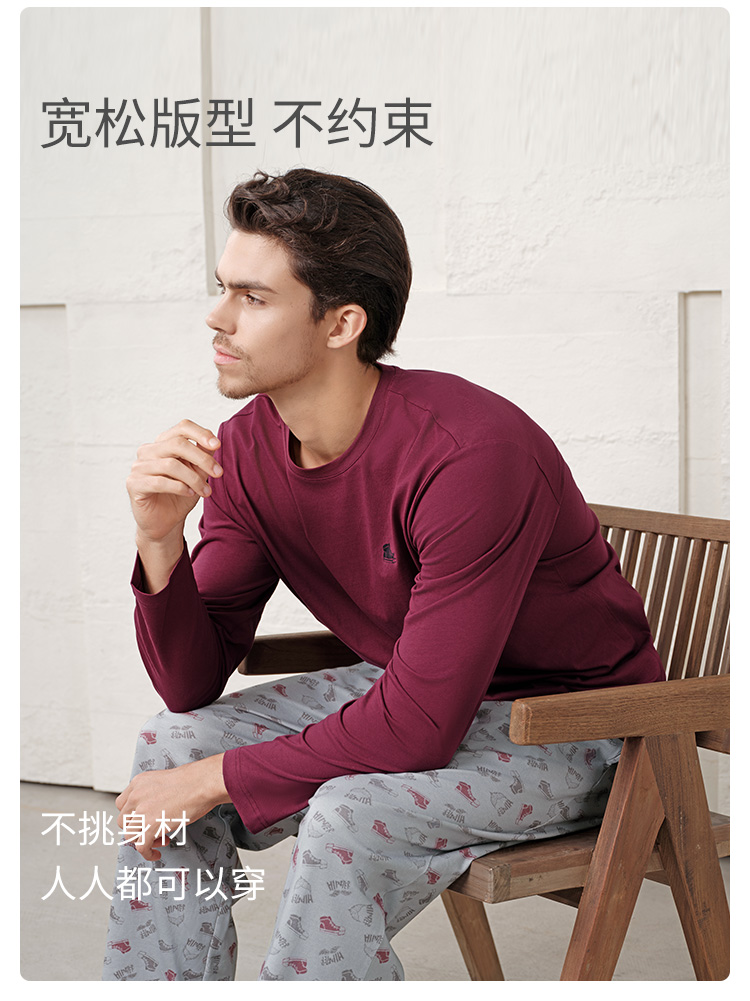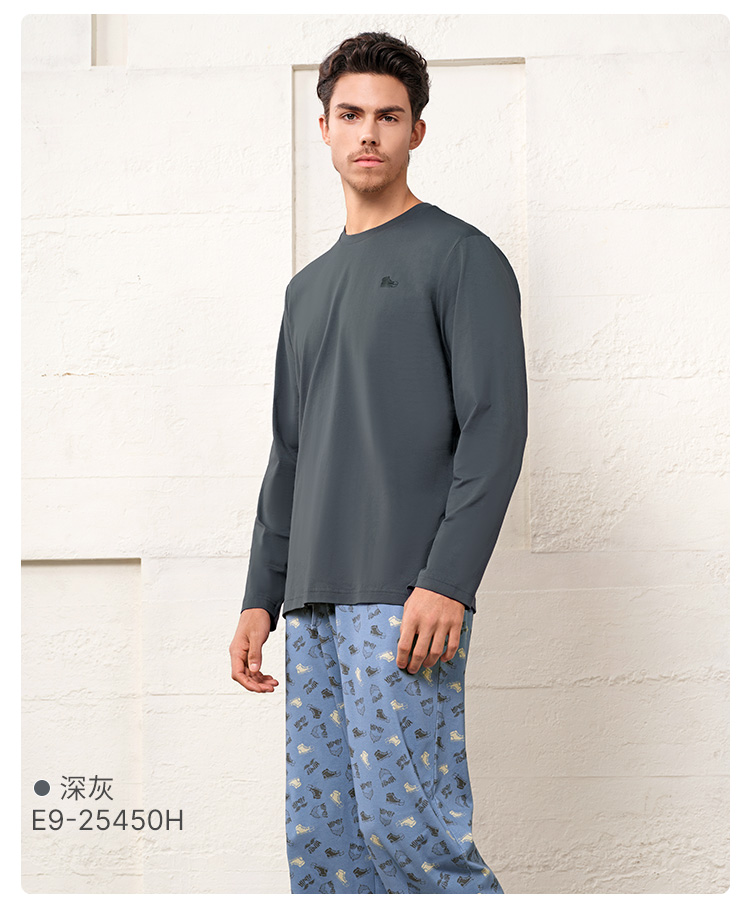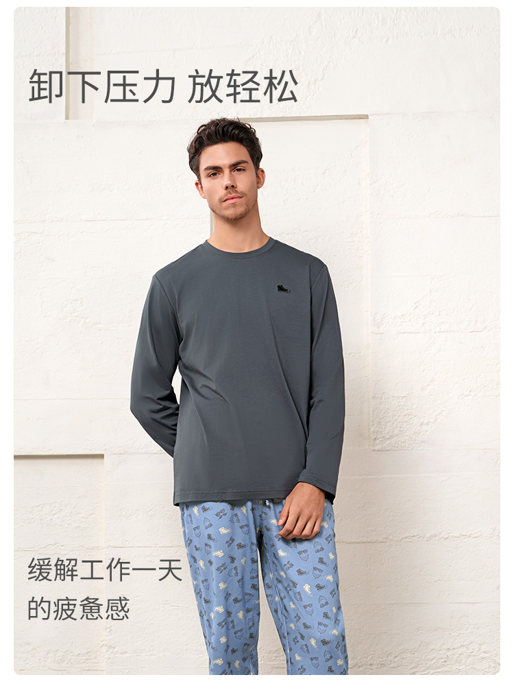 SCHIESSER舒雅25年早秋新品男士纯棉印花圆领大码睡衣家居服套装