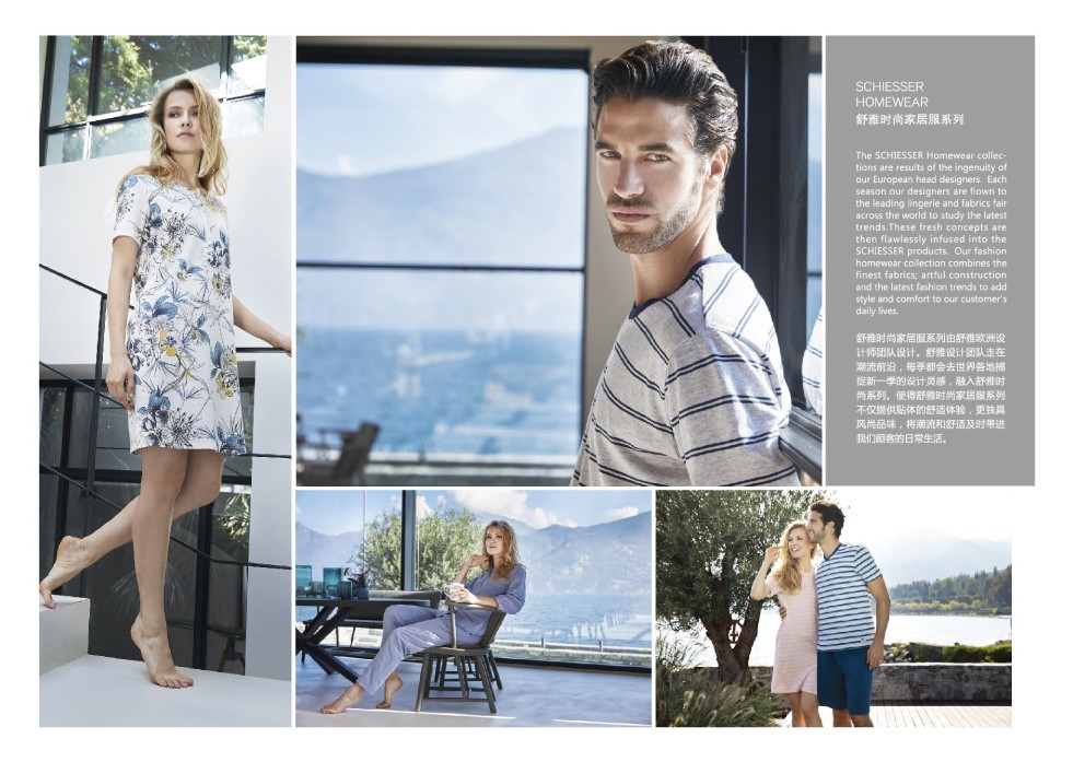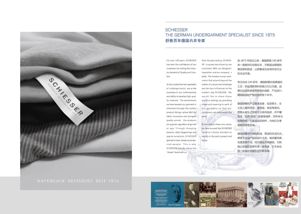 一个品牌是一种承诺,他面向顾客,面向未来。从创立伊始,SCHIESSER就被赋予了四个品牌价值:品质、天然、美观、时尚。一个品牌是一种承诺,他面向顾客,面向未来。从创立伊始,SCHIESSER就被赋予了四个品牌价值:品质、天然、美观、时尚。