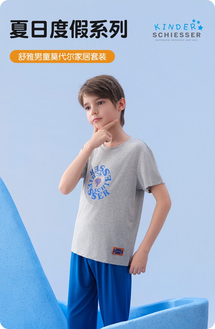 SCHIESSER舒雅26年早春新品中大童男童莫代尔夏日度假家居服套装
