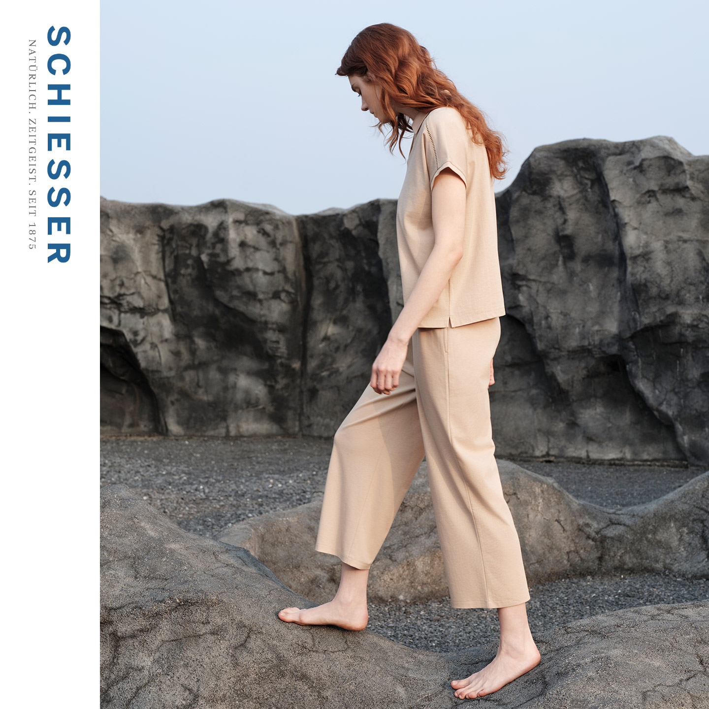SCHIESSER舒雅26早春新品女士翻领连肩镂空短袖九分裤家居服套装