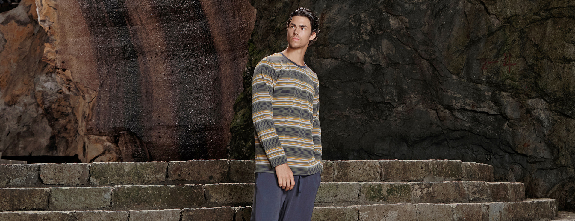 SCHIESSER舒雅25早秋新品男士純棉雙面布圓領加大碼睡衣家居套裝