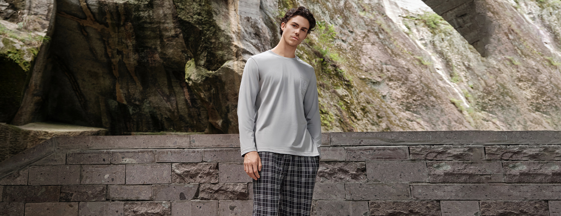 SCHIESSER舒雅鉑雅25早秋新品男士70S絲光純棉雙面布大碼家居套裝