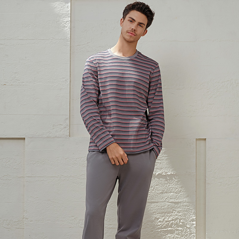SCHIESSER舒雅25年早秋新品男士純棉條紋圓領大碼睡衣家居服套裝