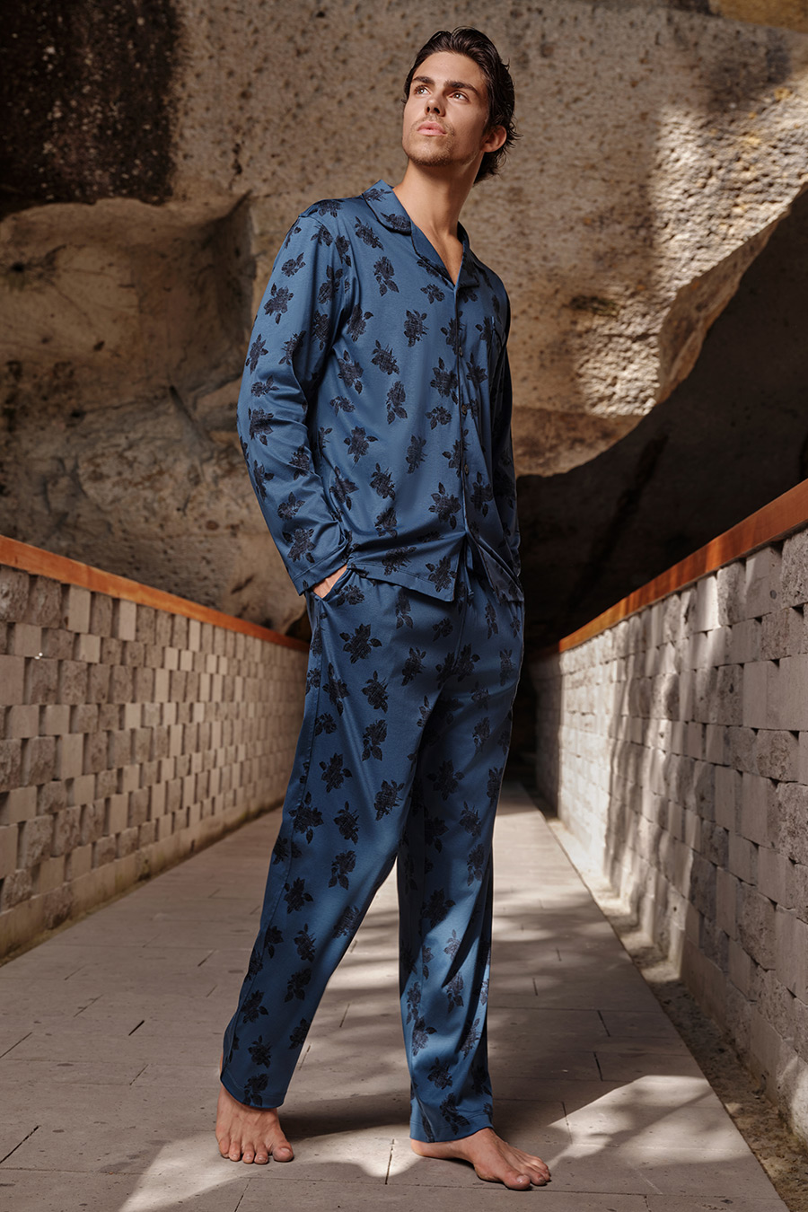 SCHIESSER舒雅25早秋新品男士純棉印花V領大碼睡衣家居服套裝