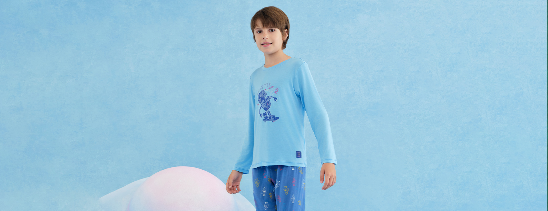 SCHIESSER舒雅25年早秋新品中大童男童莫代爾印花睡衣家居服套裝