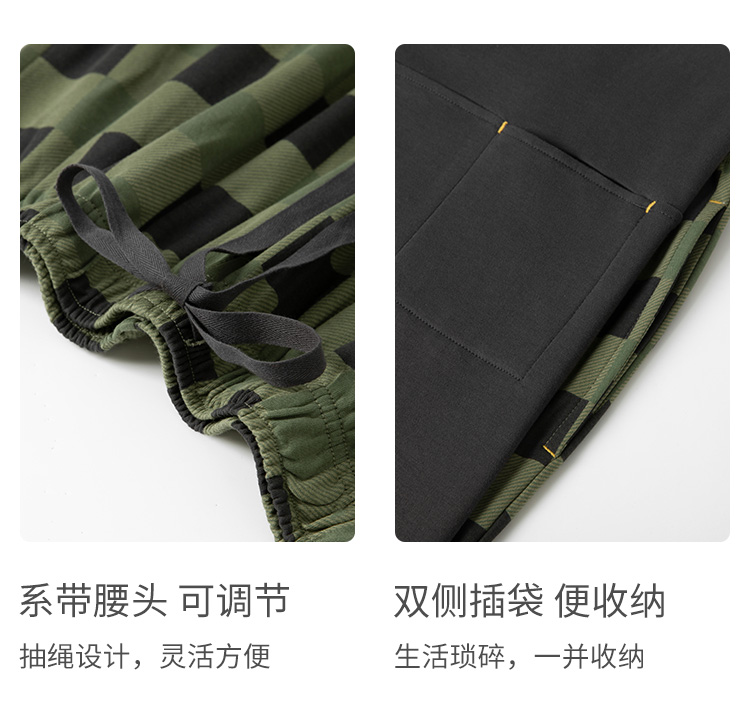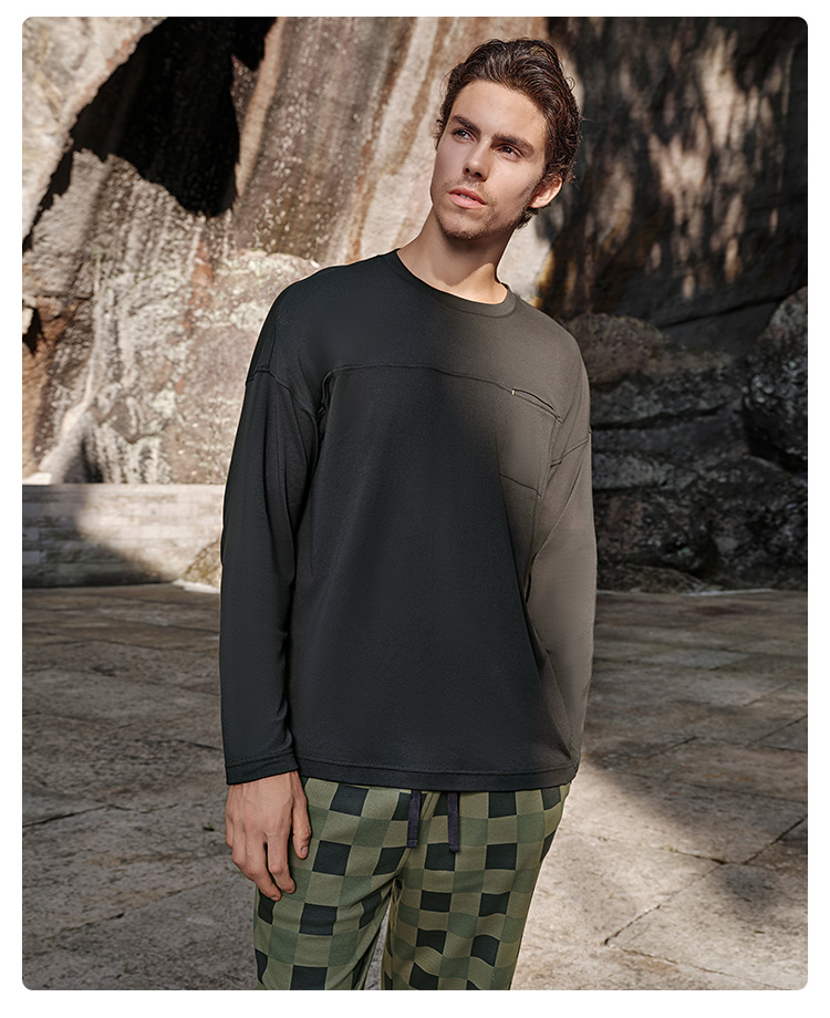 SCHIESSER舒雅25早秋新品男士純棉棋盤格圓領大碼睡衣家居服套裝