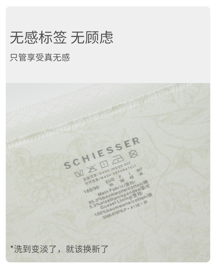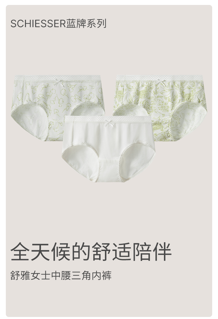 3條裝SCHIESSER舒雅25年早秋新品女士棉質印花透氣中腰三角內褲