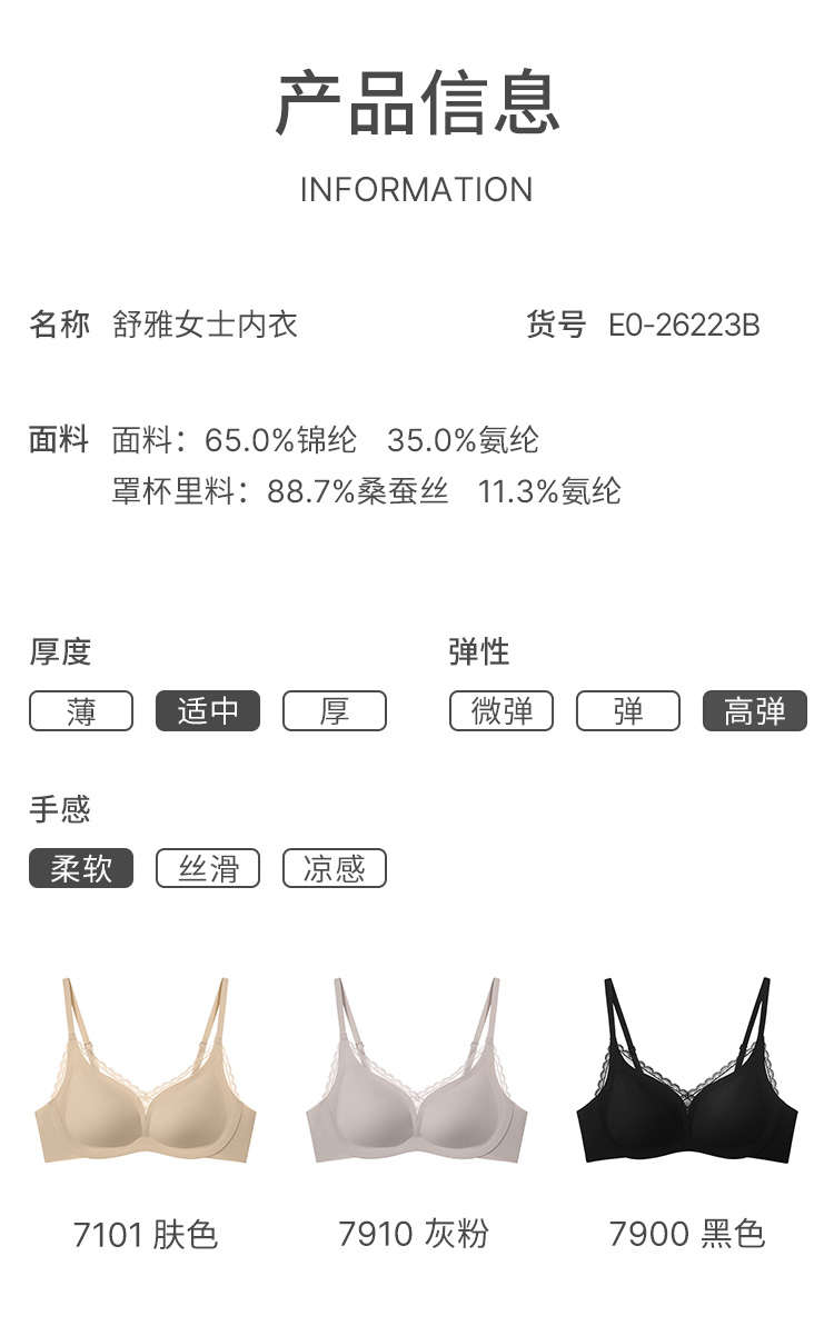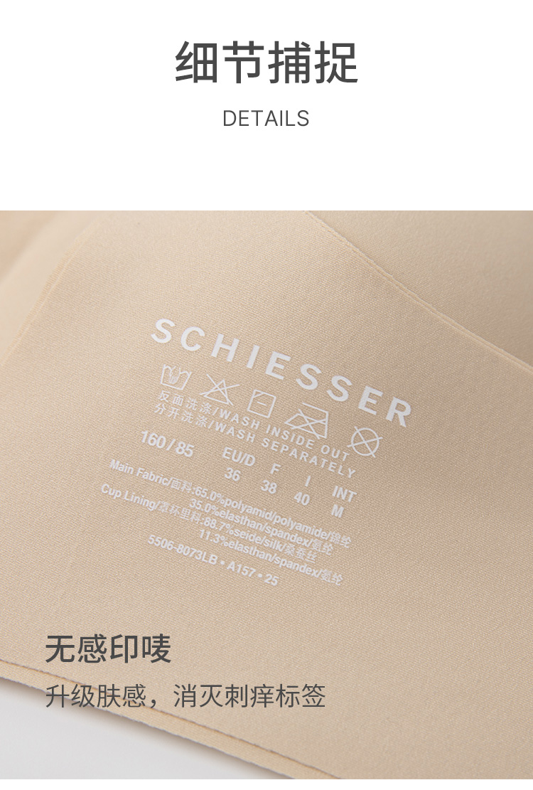 SCHIESSER舒雅25年早秋新品女士桑蠶絲真絲無痕無鋼託內衣文胸BRA