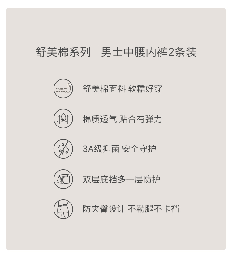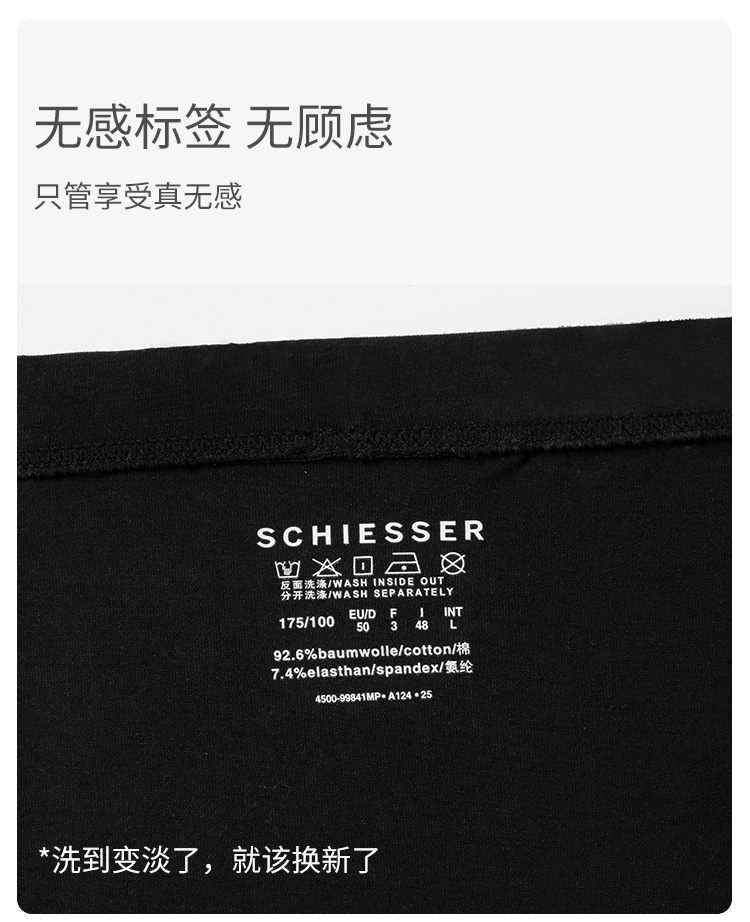2條裝SCHIESSER舒雅25早秋新品男士舒美棉3A抗菌抑菌大碼平角內褲