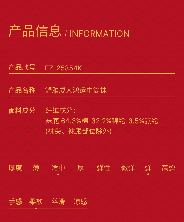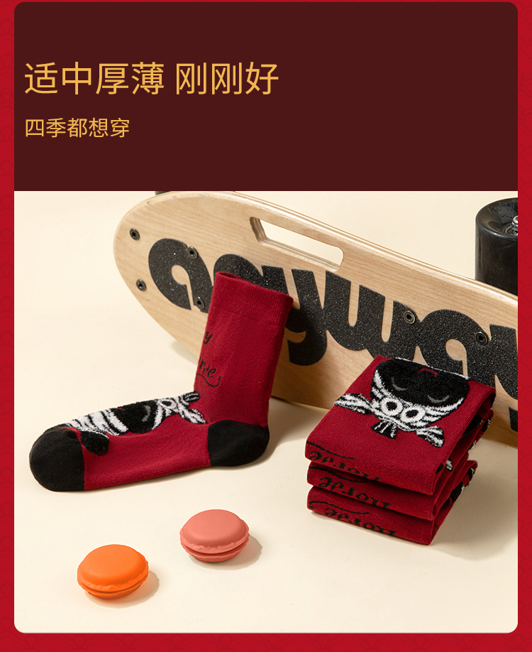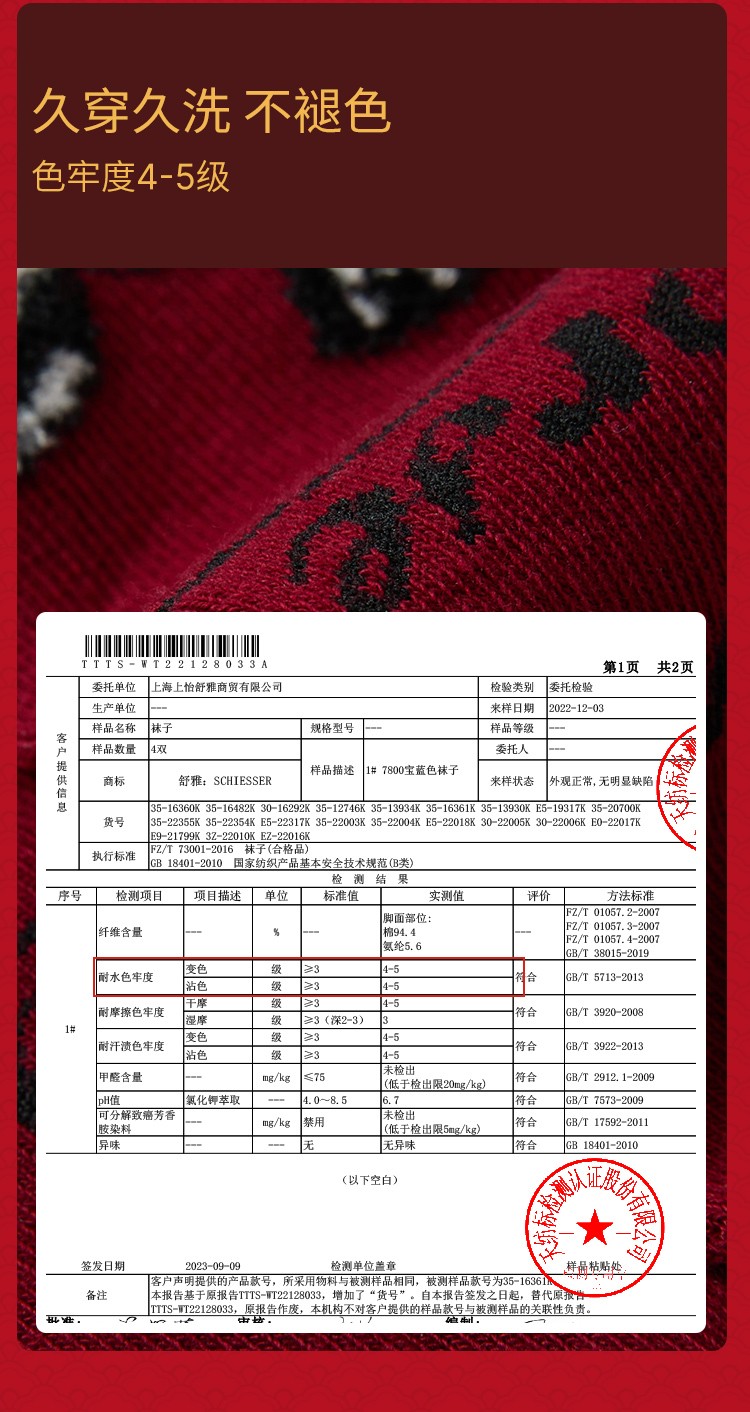 SCHIESSER舒雅25早秋新品男女同款3A抗菌新年鴻運馬年紅品中筒襪