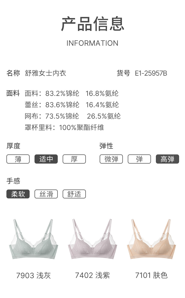 SCHIESSER舒雅25早秋新品女士蕾絲加寬側收透氣無鋼託內衣文胸BRA