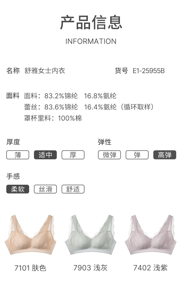 SCHIESSER舒雅25早秋新品女士蕾絲加寬側收透氣無鋼託內衣文胸BRA