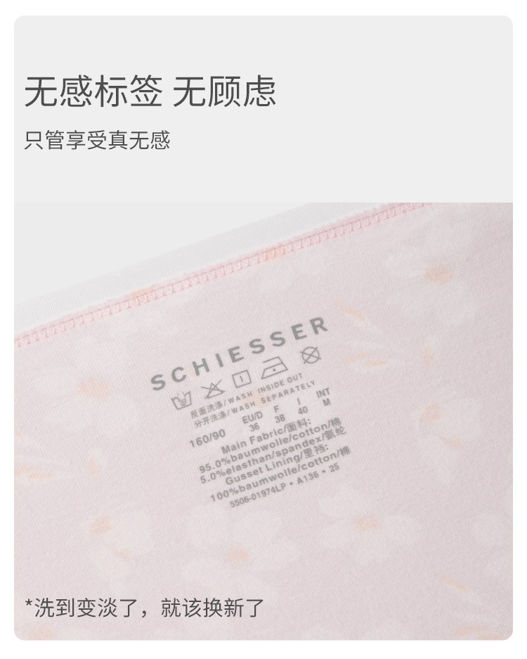 3條裝SCHIESSER舒雅25年早秋新品女士棉質印花透氣中腰平角內褲