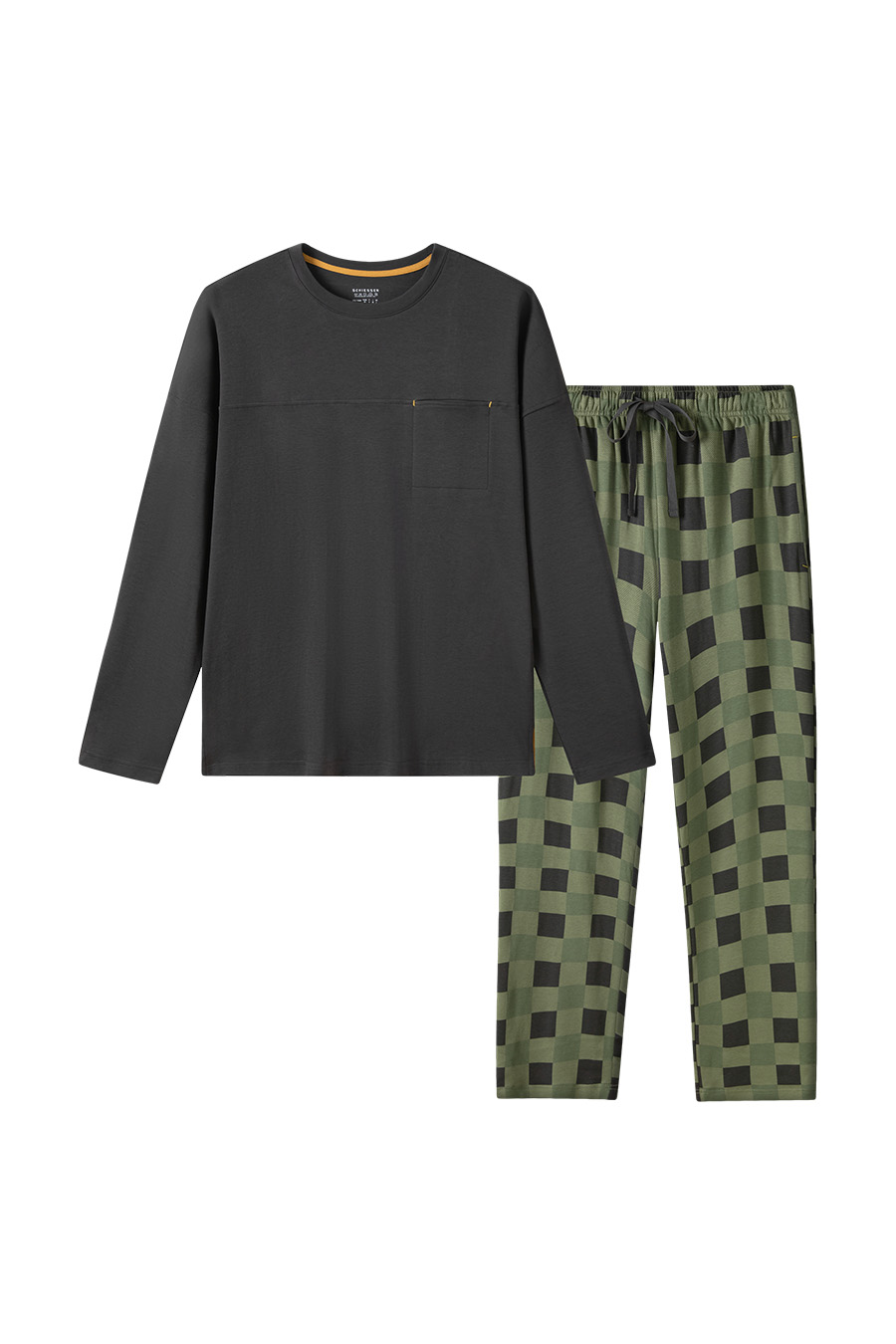 SCHIESSER 2025 F-W Men's Cotton Checkered Round Neck Large Size Sleepwear Homewear Set