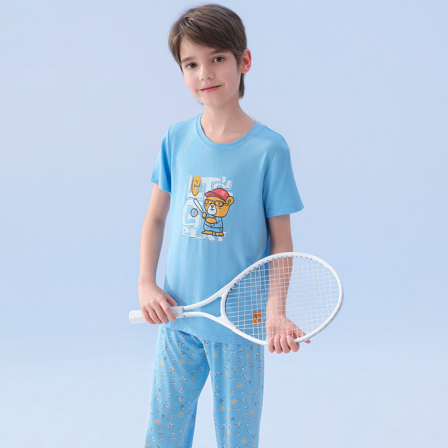 SCHIESSER舒雅25年早秋新品大小童男童莫代尔圆领睡衣家居服套装
