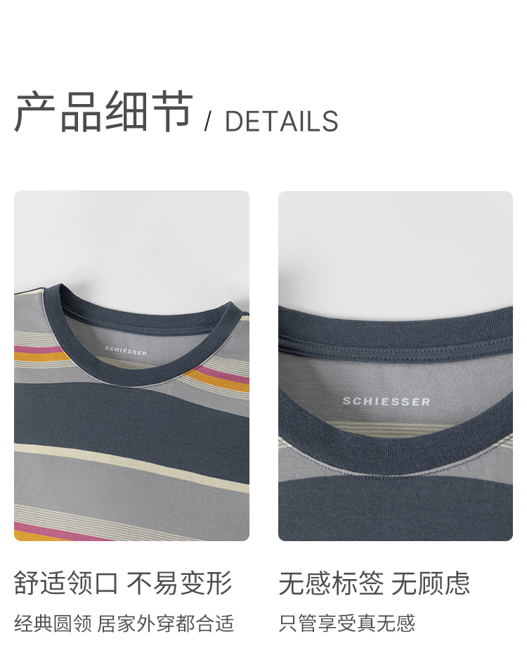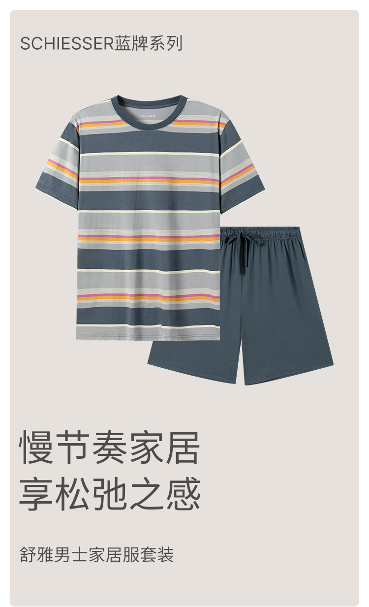 SCHIESSER舒雅24年早春新品男士棉莫代尔条纹睡衣家居服套装22574