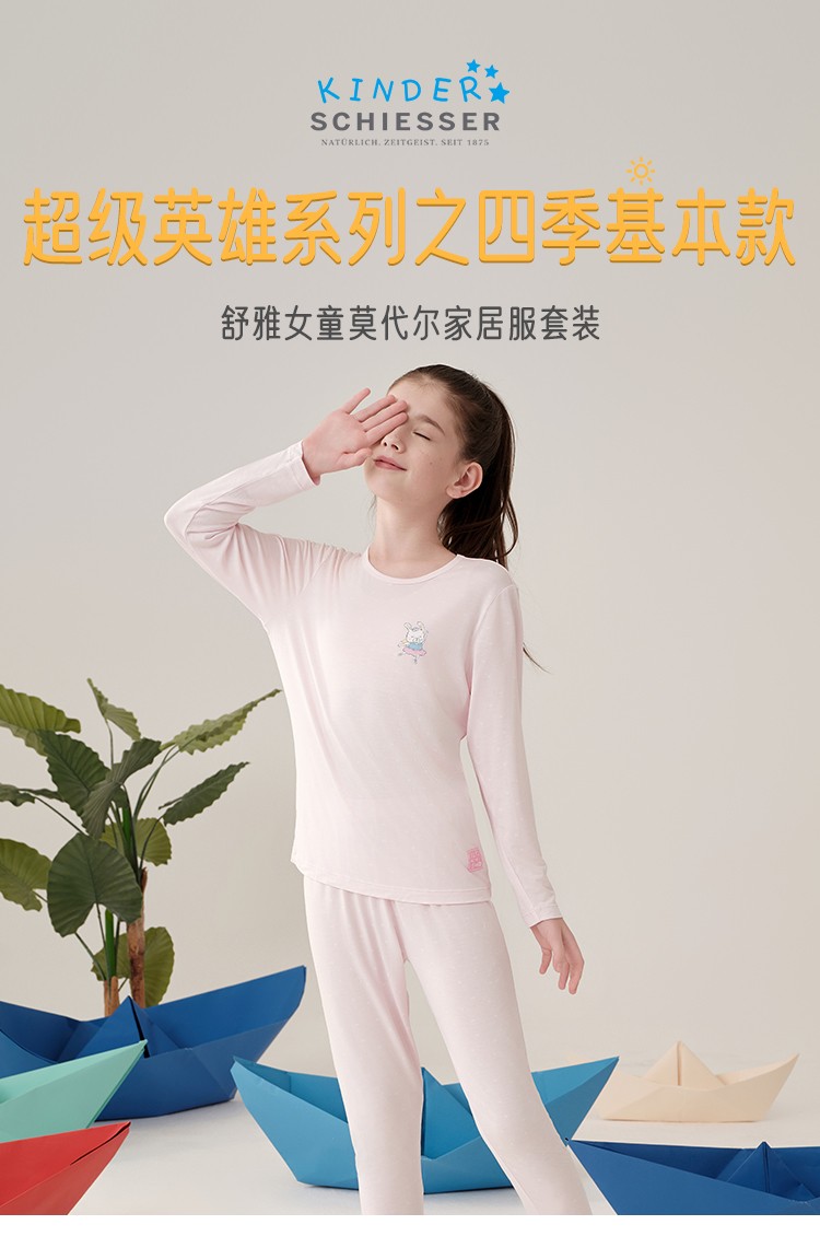 SCHIESSER舒雅童装24年早春新品女童莫代尔小兔子超人家居服套装