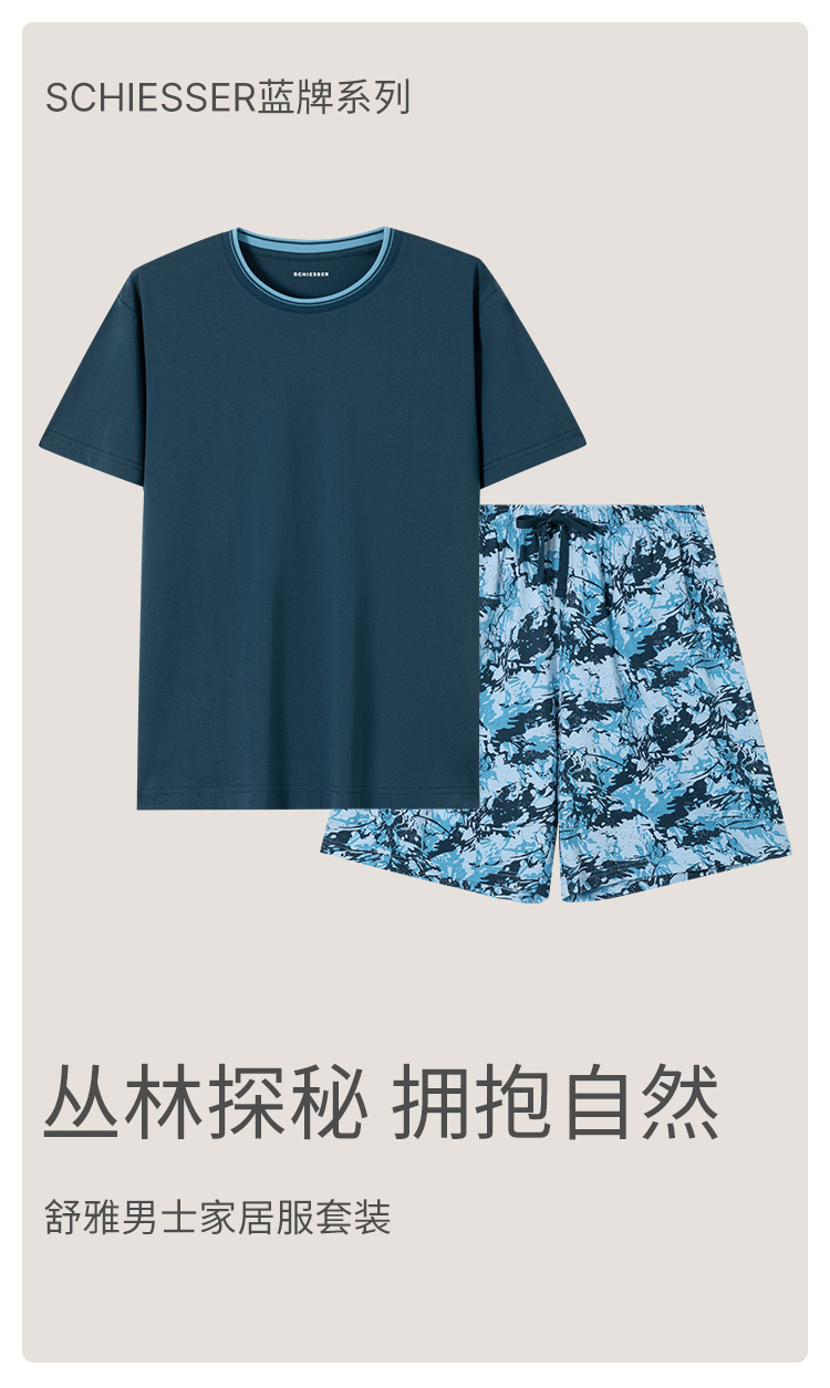 SCHIESSER舒雅24年早春新品男士纯棉迷彩印花睡衣家居服套装22539