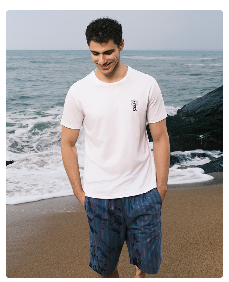 SCHIESSER舒雅24年早春新品男士纯棉梭织条纹家居短裤亲肤透气