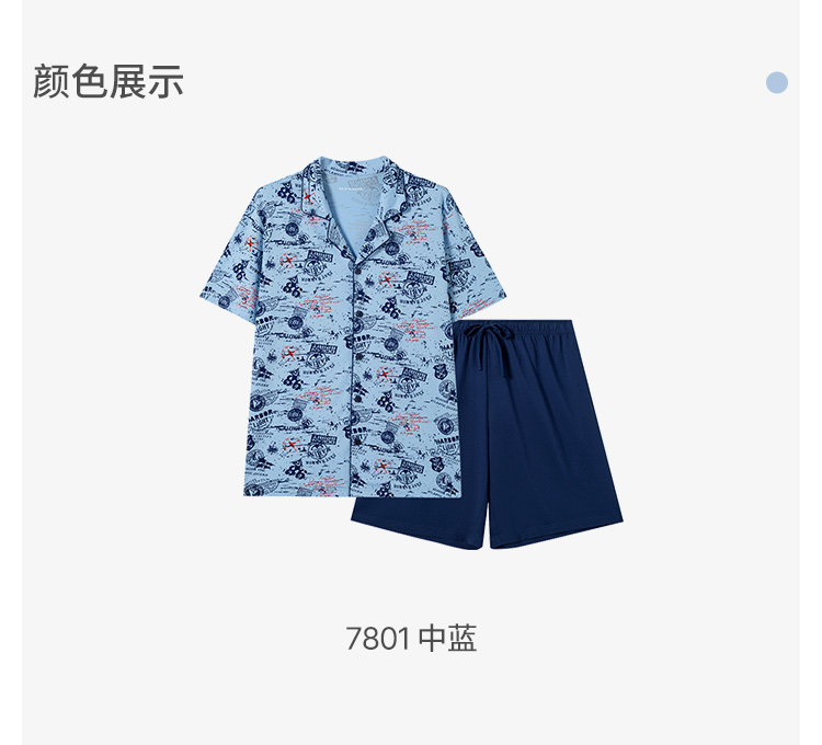 SCHIESSER舒雅24年早春新品男士纯棉邮戳印花睡衣家居服套装22576