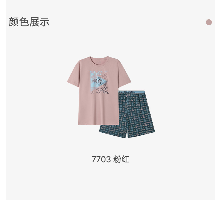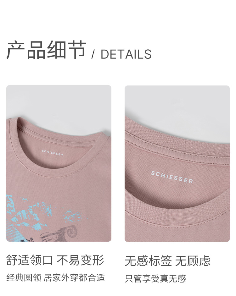 SCHIESSER舒雅24年早春新品男士纯棉圆领睡衣家居服套装2600H