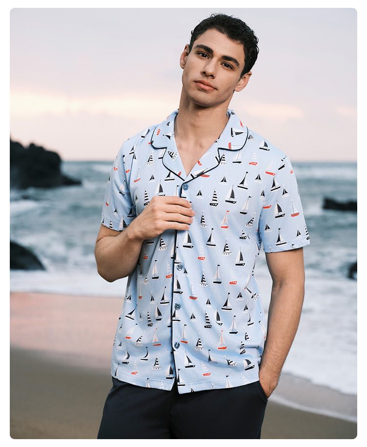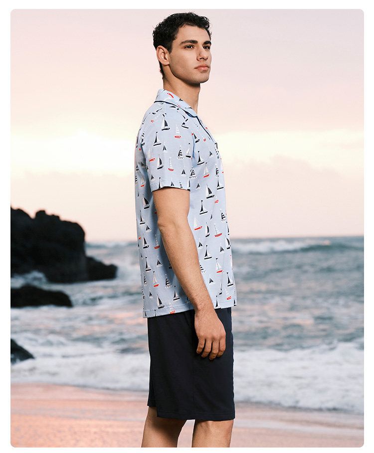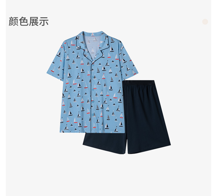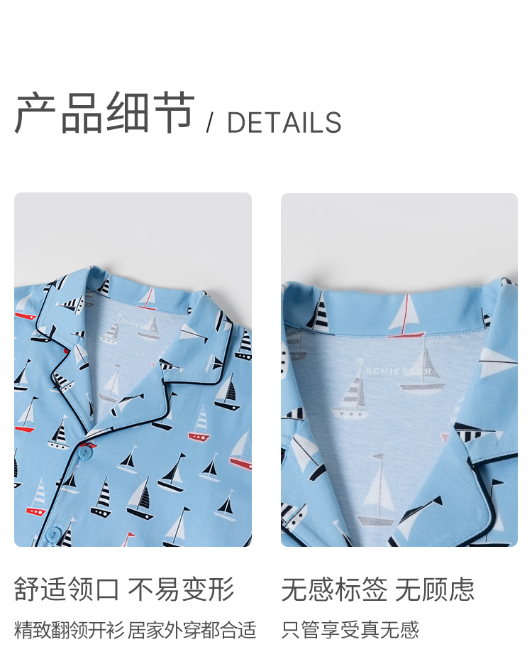 SCHIESSER舒雅24年早春新品男士纯棉翻领睡衣家居服套装22590H