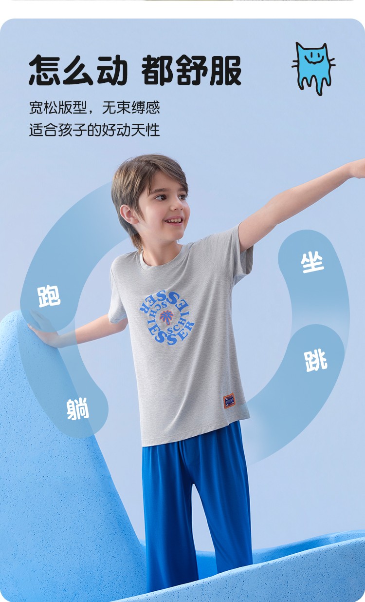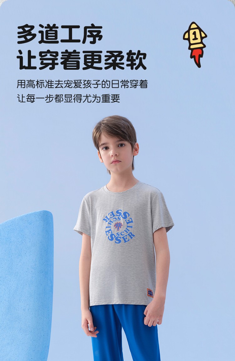SCHIESSER舒雅26年早春新品中大童男童莫代尔夏日度假家居服套装