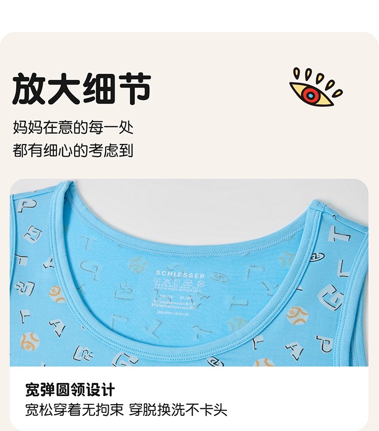 SCHIESSER舒雅26年早春新品大小童男童莫代尔超级小英雄打底背心