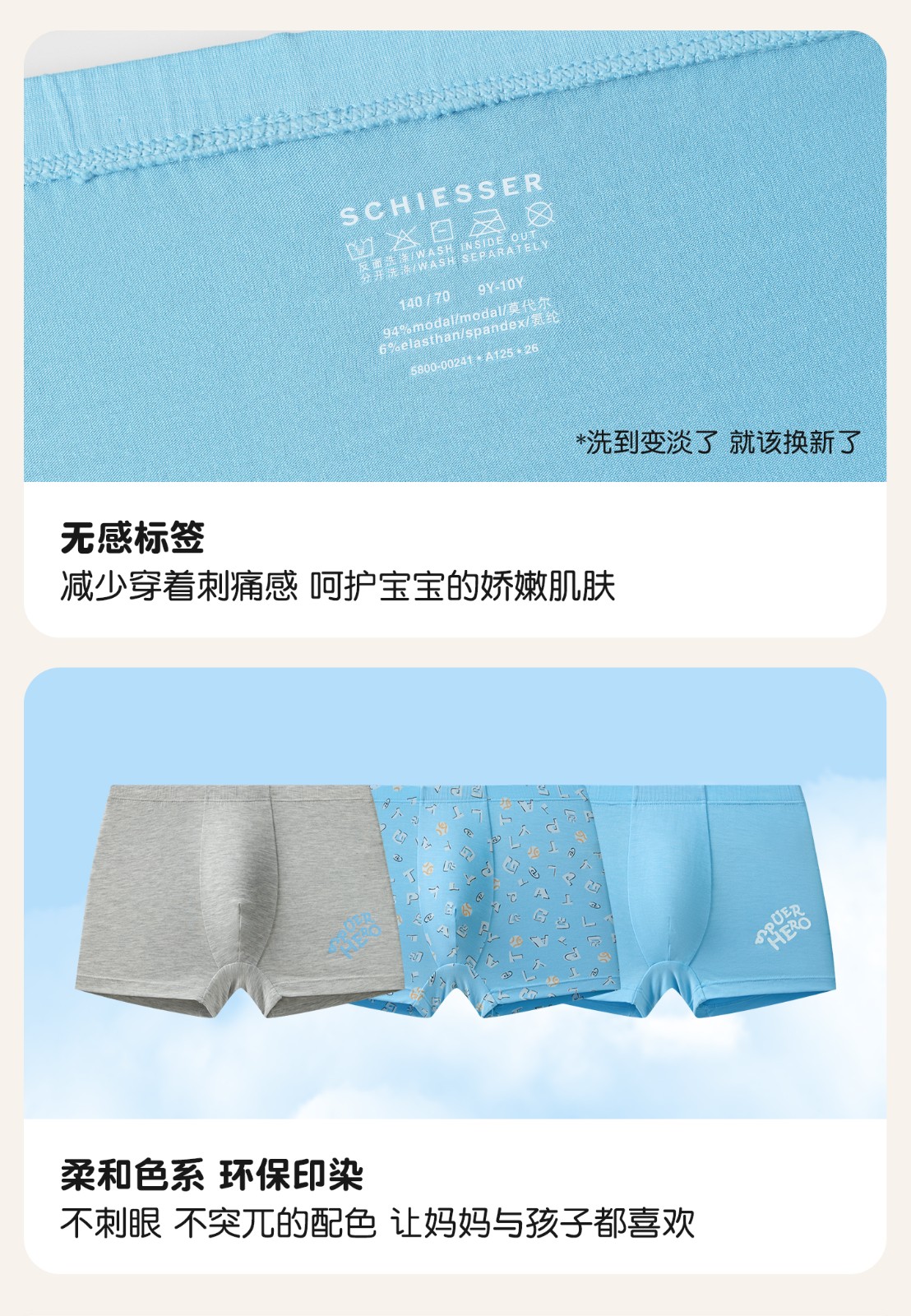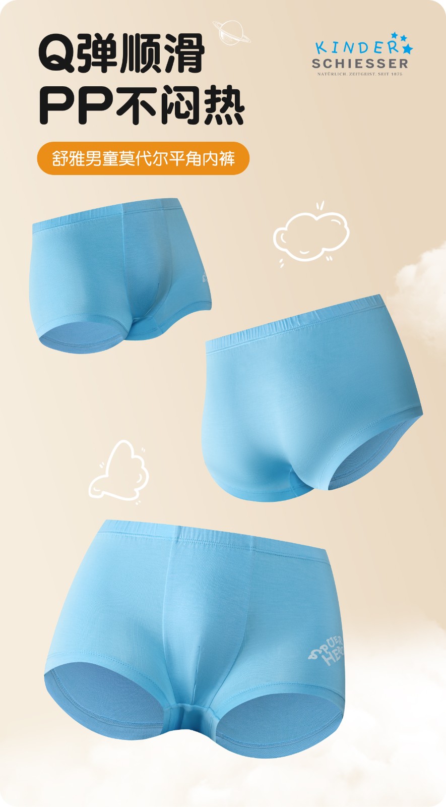 3条装SCHIESSER舒雅26年早春新品大小童男童莫代尔亲肤平角内裤