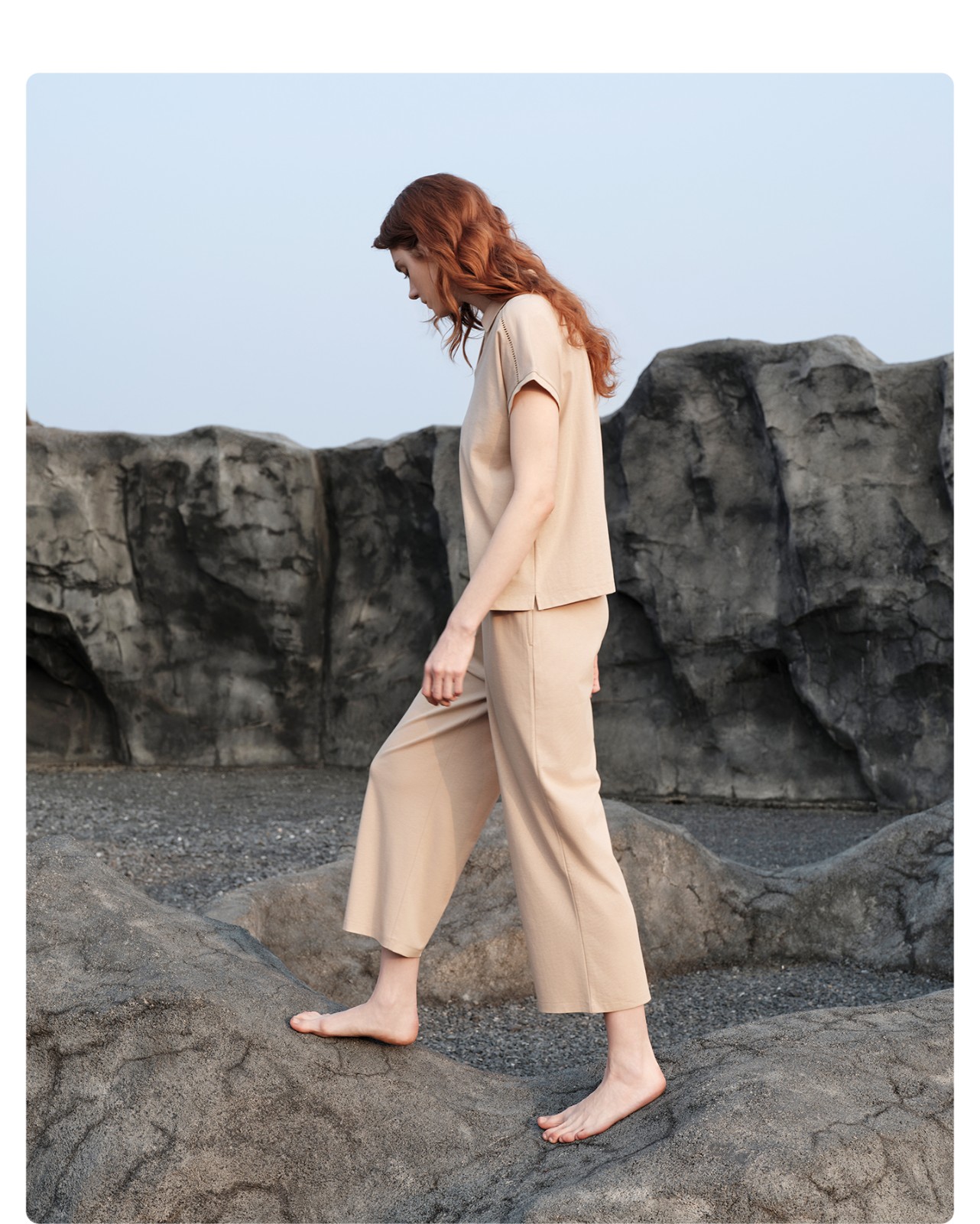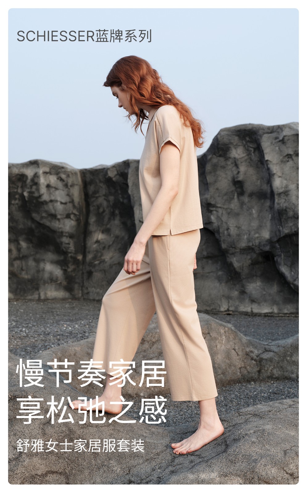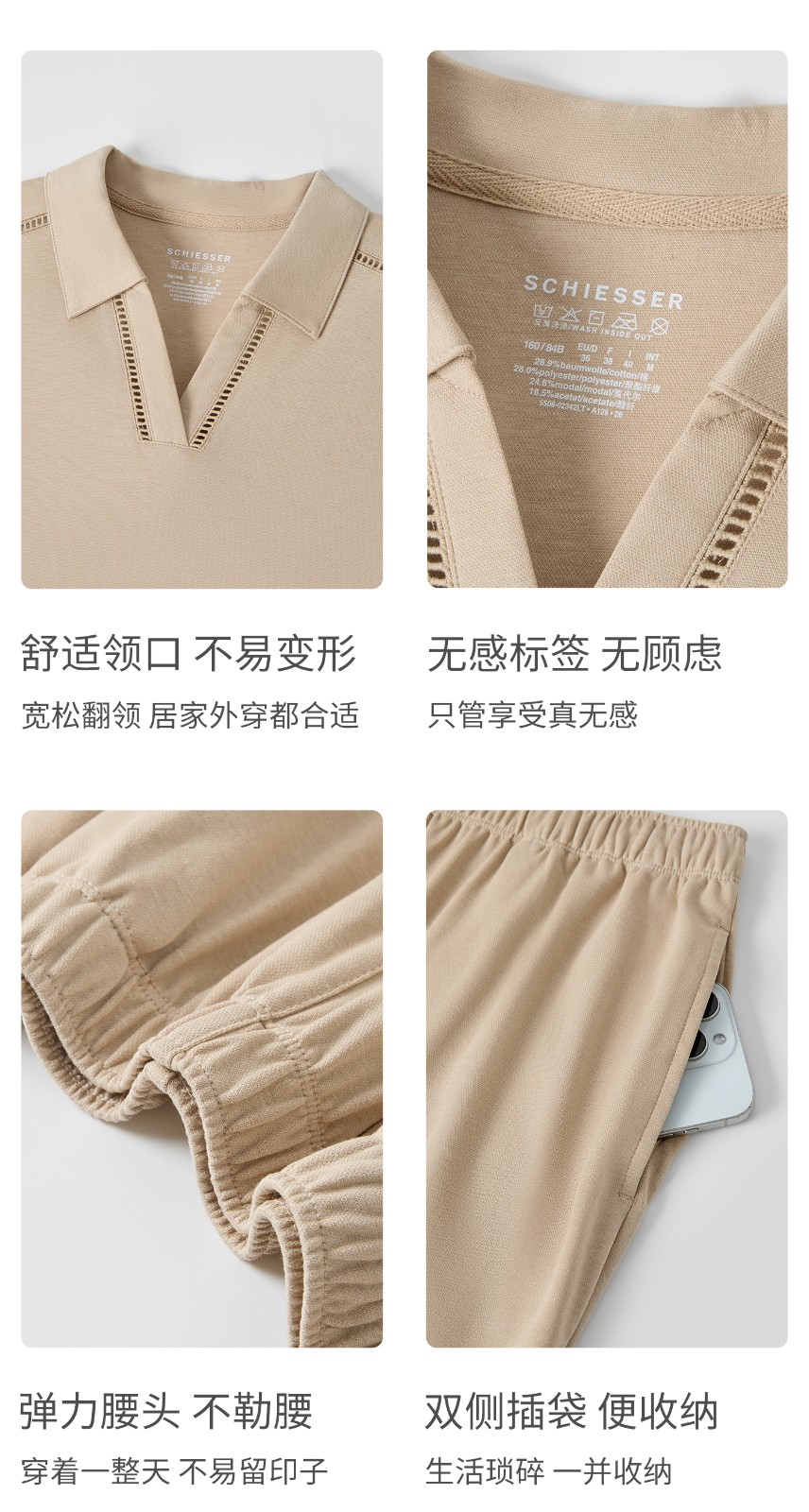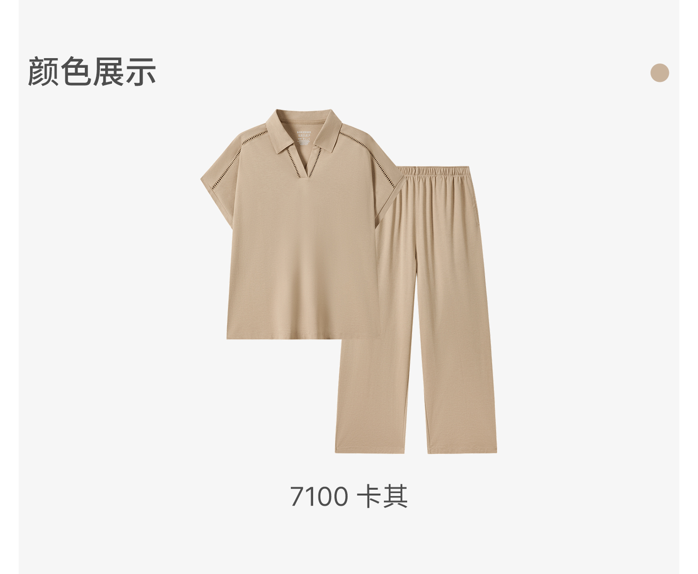 SCHIESSER舒雅26早春新品女士翻领连肩镂空短袖九分裤家居服套装