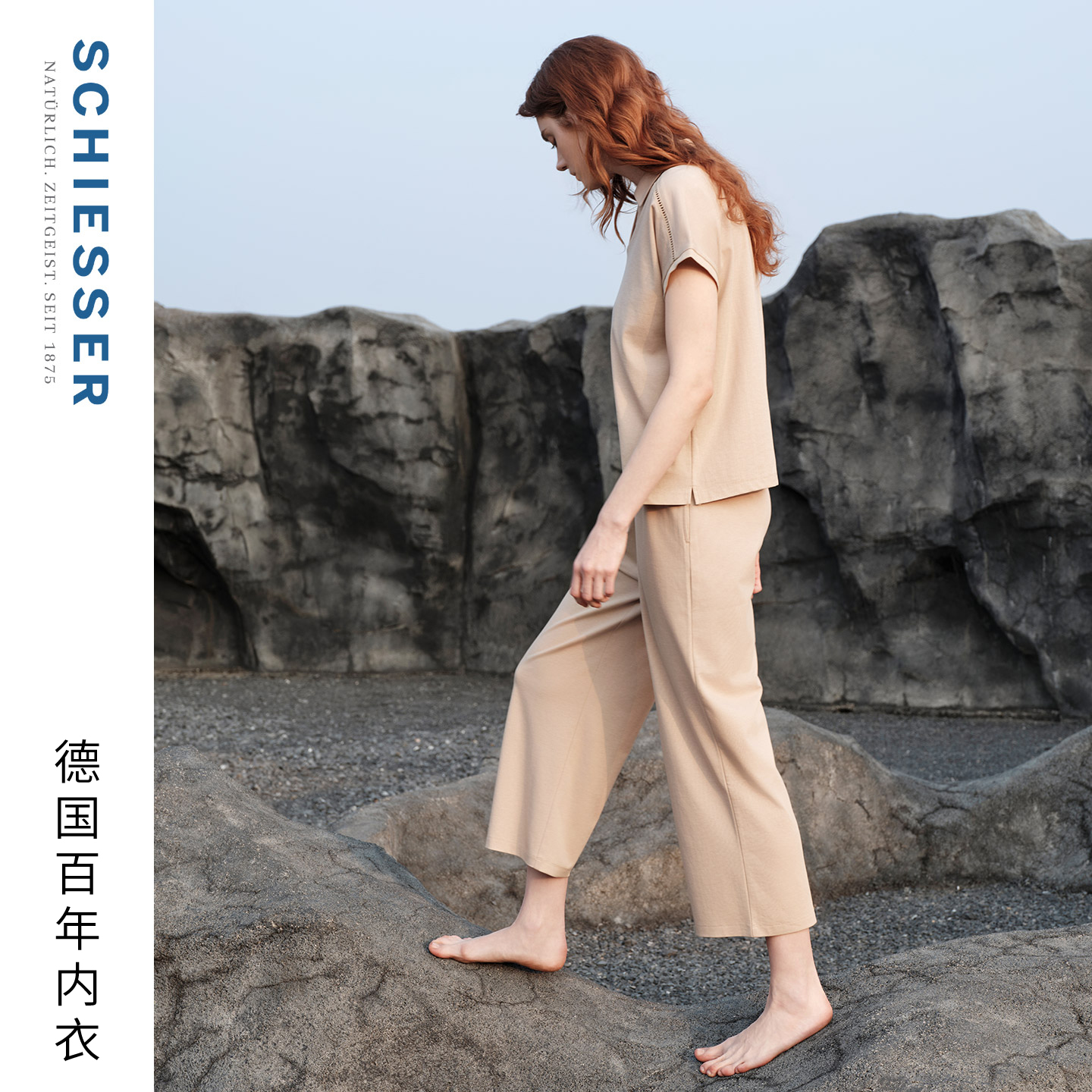 SCHIESSER舒雅26早春新品女士翻領連肩鏤空短袖九分褲家居服套裝
