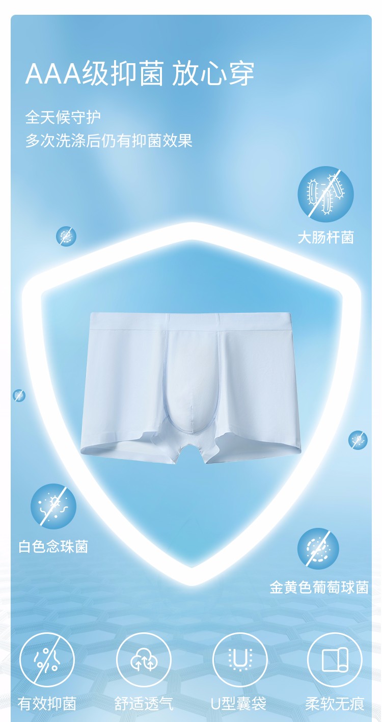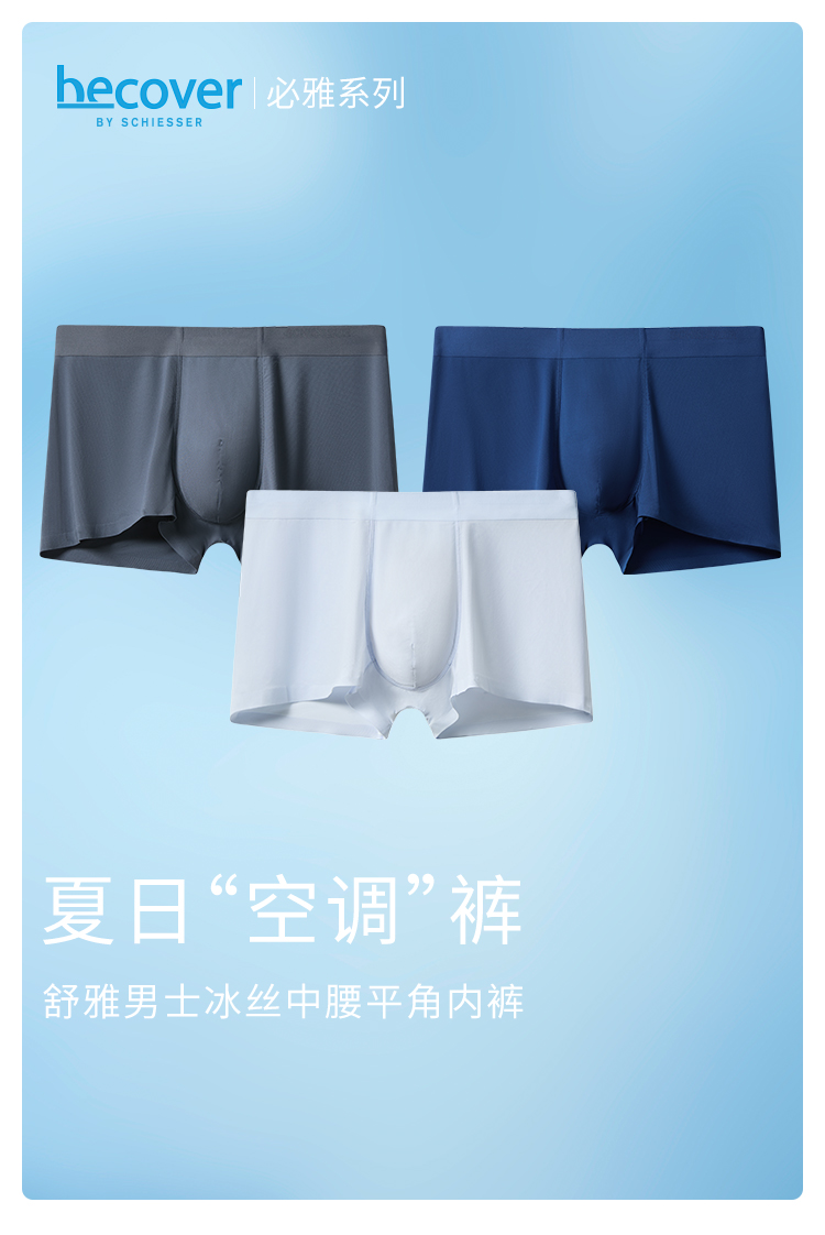 3條裝SCHIESSER舒雅男士早秋新品冰絲涼感抑菌速幹透氣男平角內褲