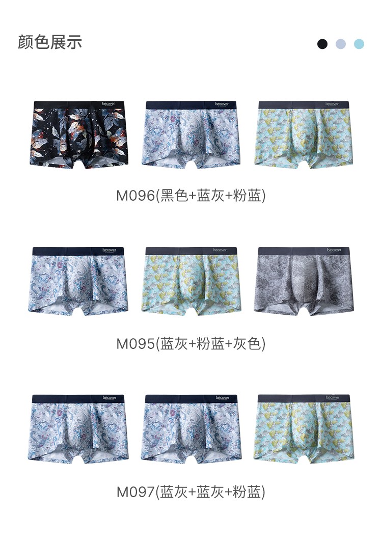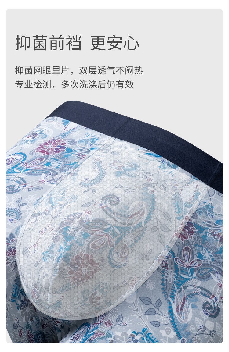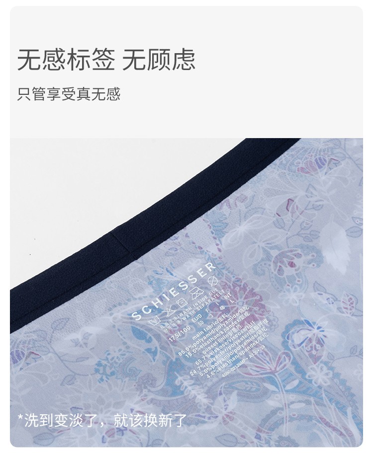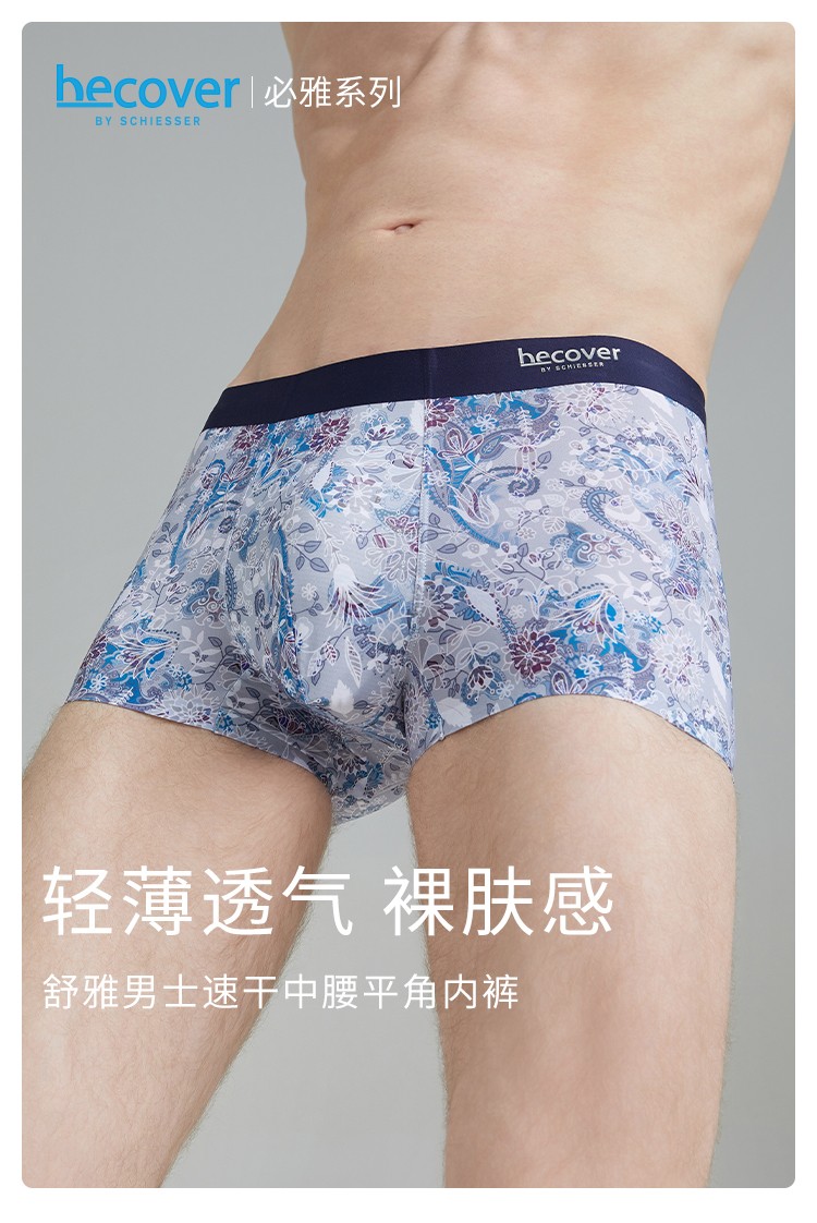 3條裝SCHIESSER舒雅24年早春新品男士3A抑菌印花輕薄透氣平角內褲
