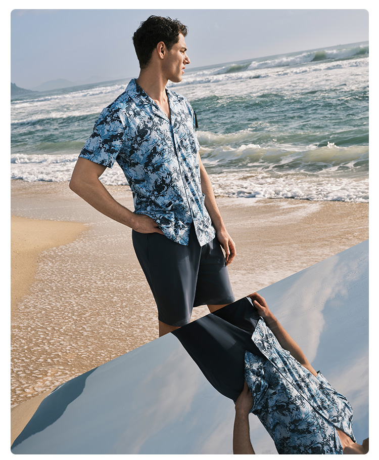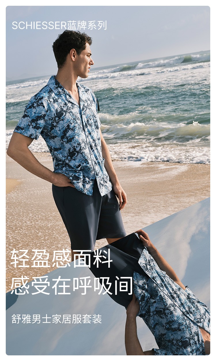 SCHIESSER舒雅24年早春新品男士純棉翻領睡衣家居服套裝22540H