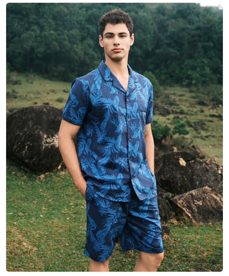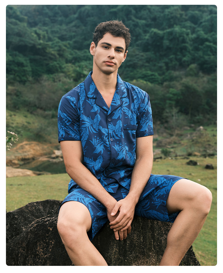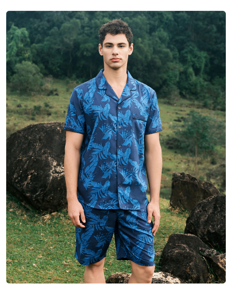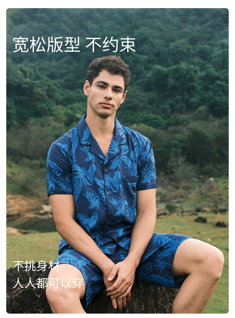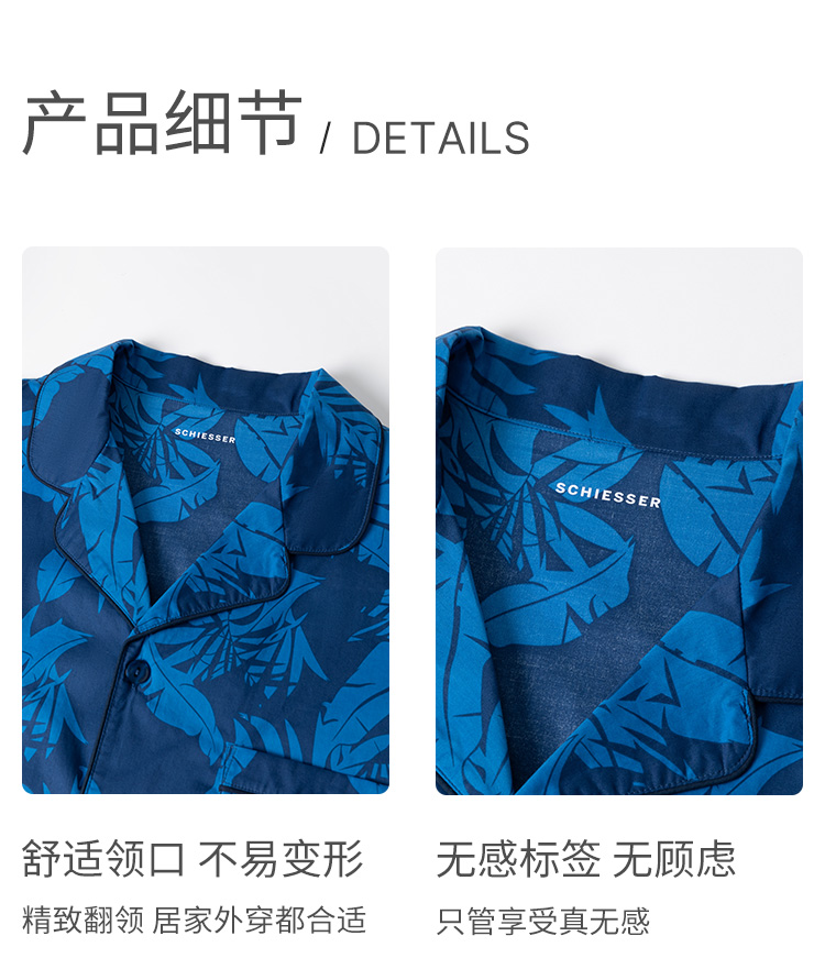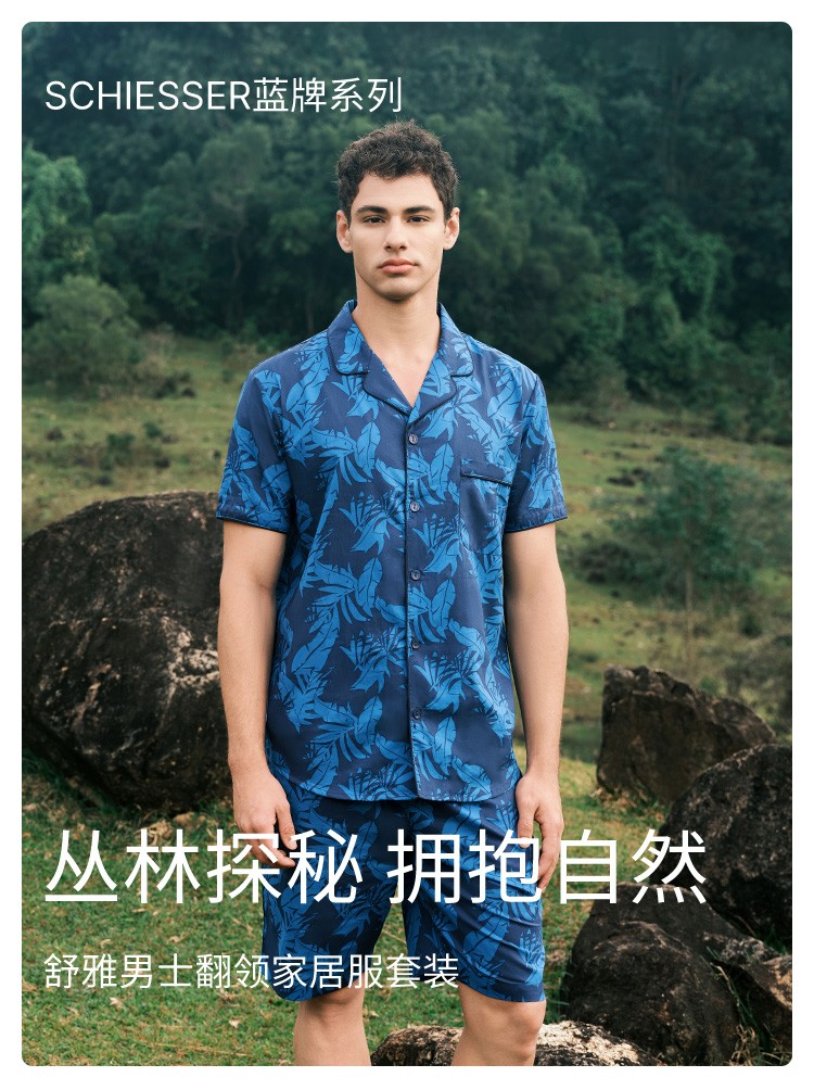 SCHIESSER舒雅24年早春新品男士純棉梭織翻領睡衣家居服套裝22765