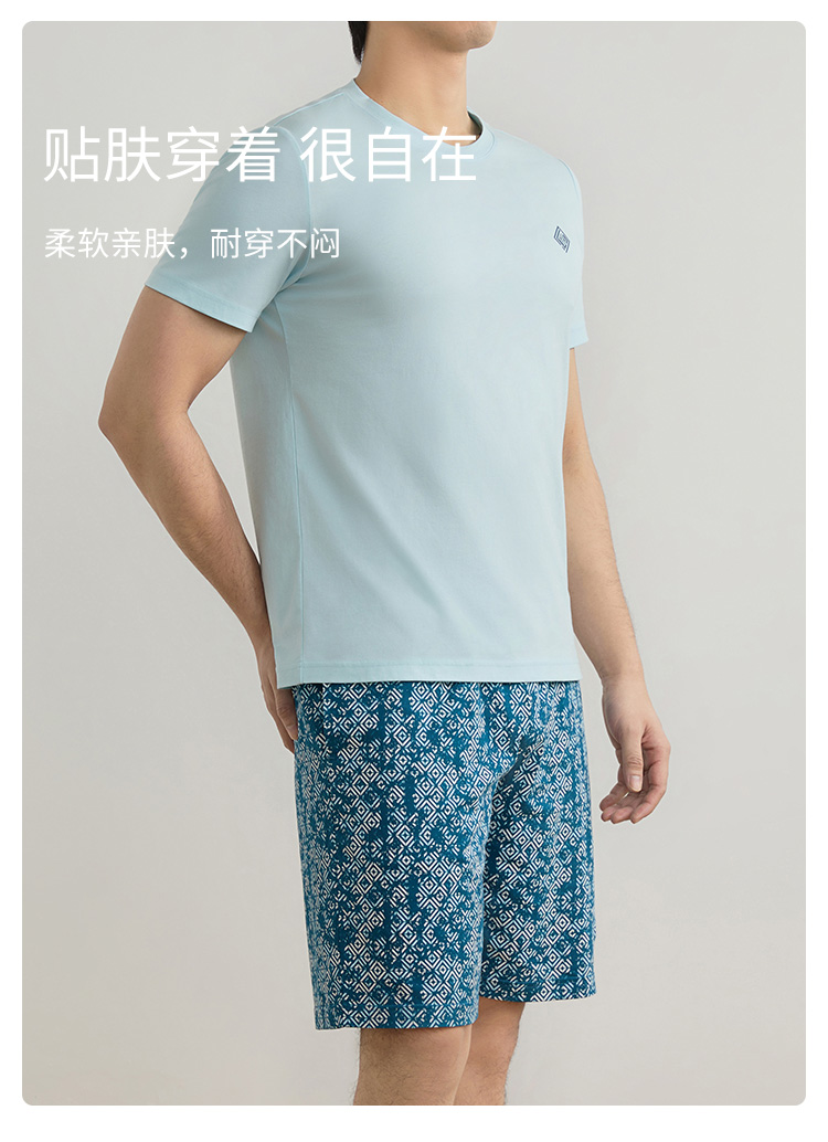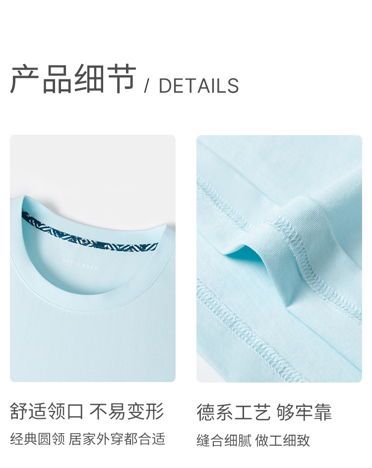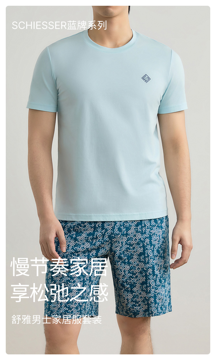 SCHIESSER舒雅24年早春新品男士純棉圓領睡衣家居服套裝22553H