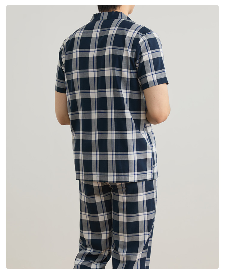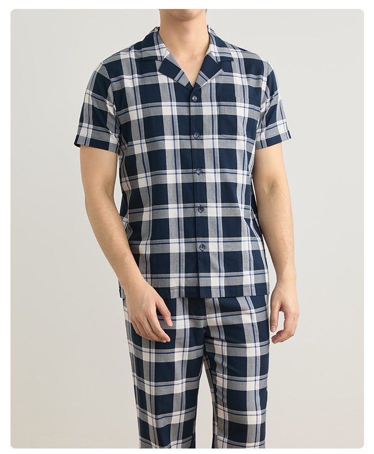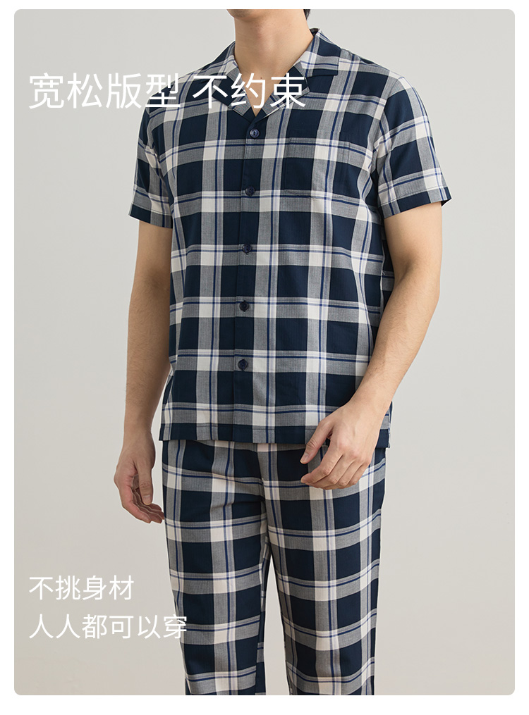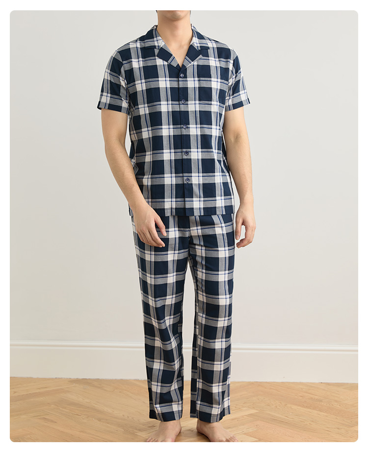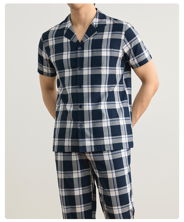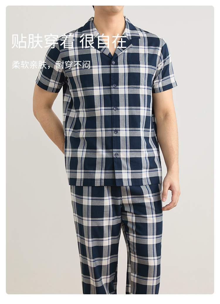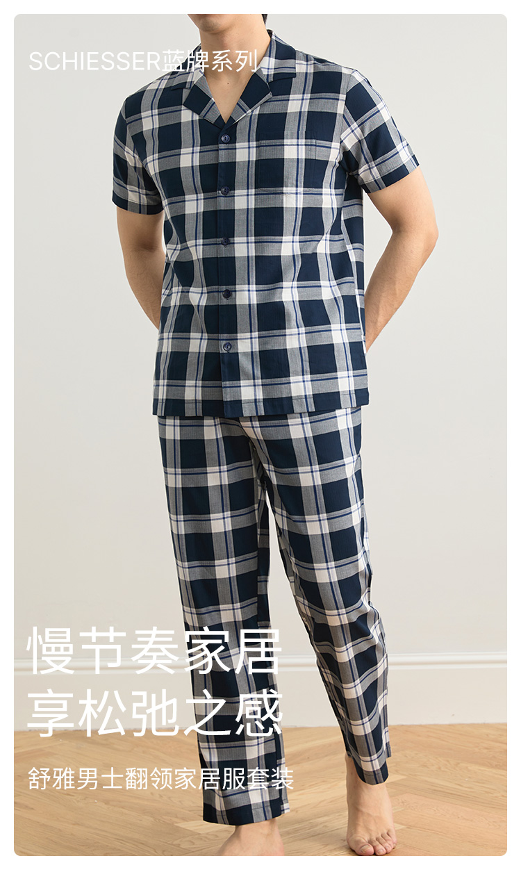 SCHIESSER舒雅24年早春新品男士純棉梭織格子睡衣家居服套裝22767