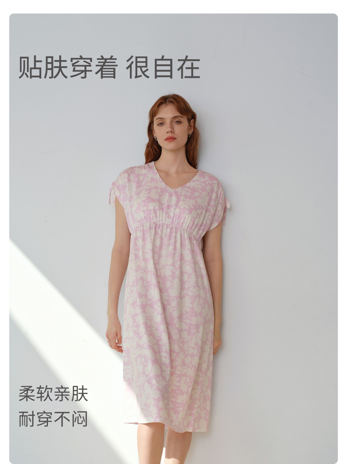 SCHIESSER舒雅26年早春新品女士棉莫代爾親膚V領印花家居服睡裙